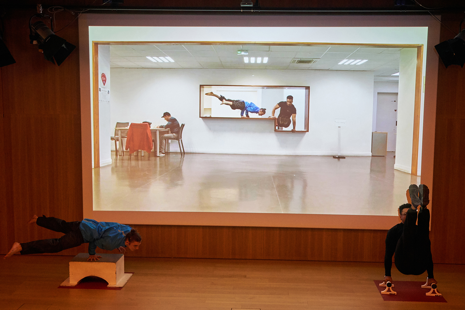 Une performance intitulée 2 barres est créée par GONGLE pour un circassien et un praticien de street workout, loisir sportif mêlant gymnastique et musculation qui se pratique essentiellement en extérieur.
