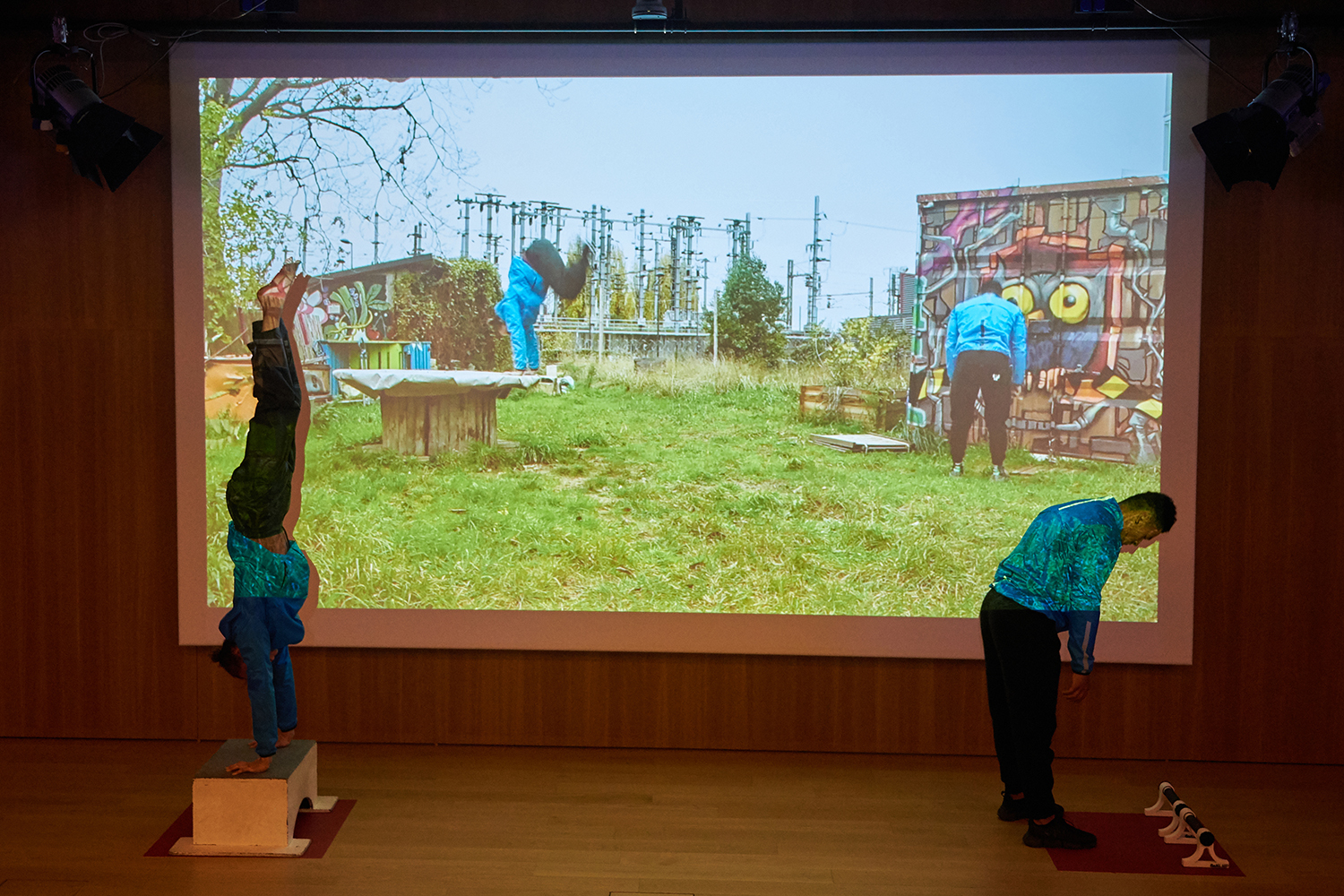 Sous la forme d’un parcours de lieu en lieu au Landy, la pratique du street workout, combinée à celle du cirque permet de chorégraphier une grande variété d’usages, d’explorer des façons d’habiter et de cohabiter dans ce quartier, de représenter les liens entre la ville, le corps et le travail. 2 barres est interprété par Baki_HD_membre de la Swat team, Aimé Rauzier, apprenti de première année à l’Académie Fratellini. GONGLE, groupe d’artistes et de chercheurs, se saisit de l’accueil des Jeux Olympiques et Paralympiques en 2024 pour recenser et faire émerger des projets croisant les champs de l’art et du sport et constituer un réseau art-sport. Ce travail en lien avec le Département de la Seine Saint-Denis s’élabore à partir du 93 et vise à se déployer à l’échelle européenne.