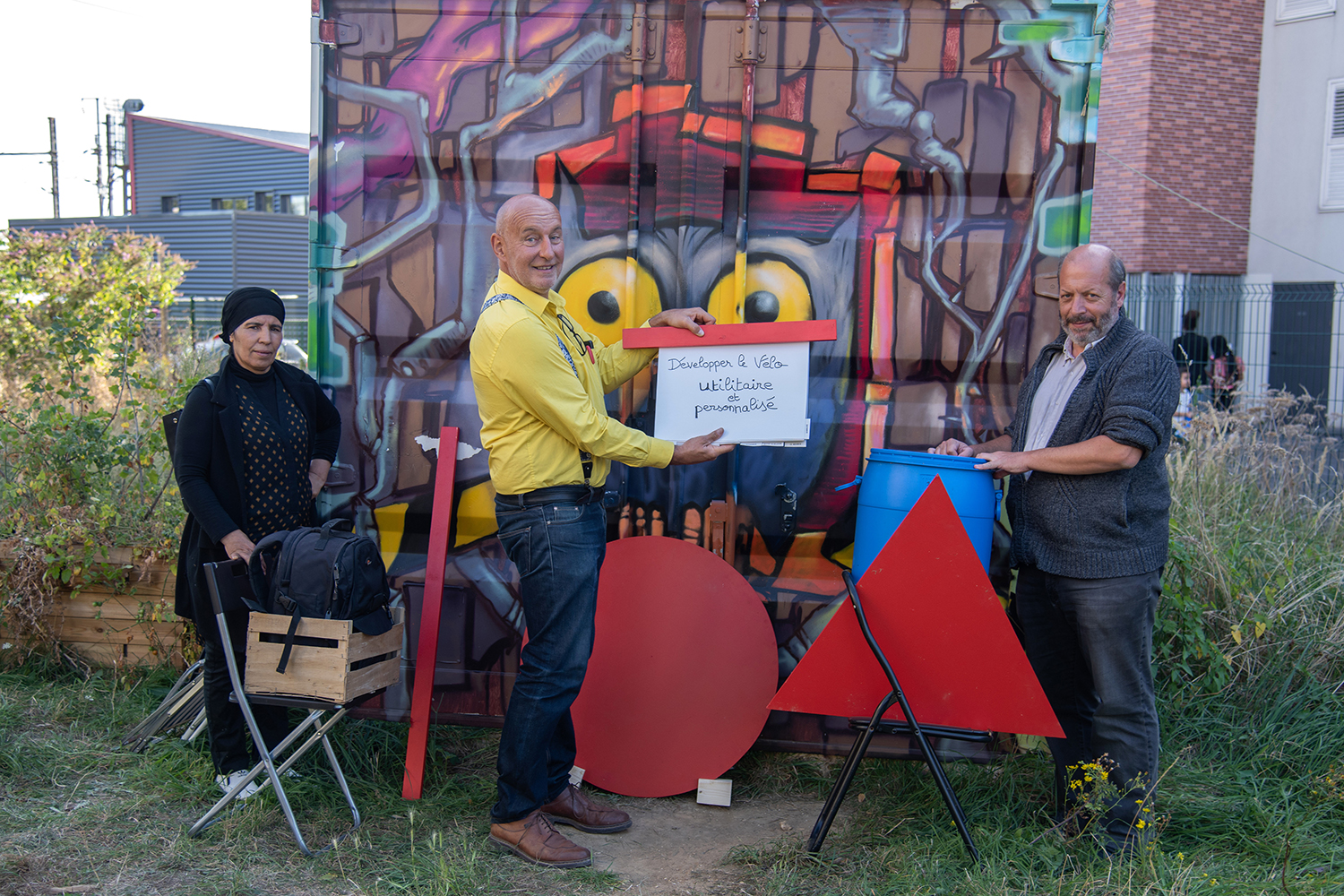 Équipe salariés de la SNCF et habitante