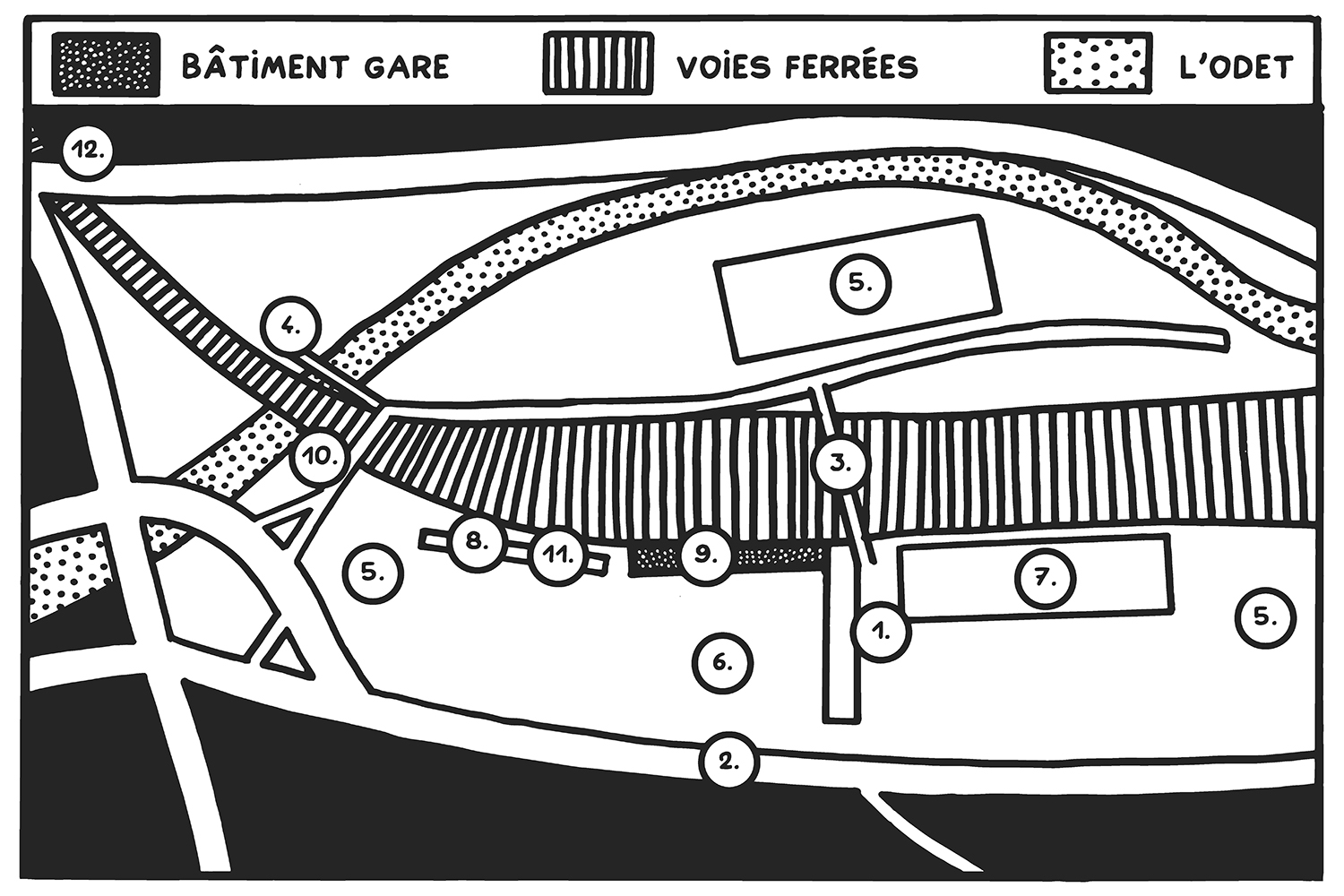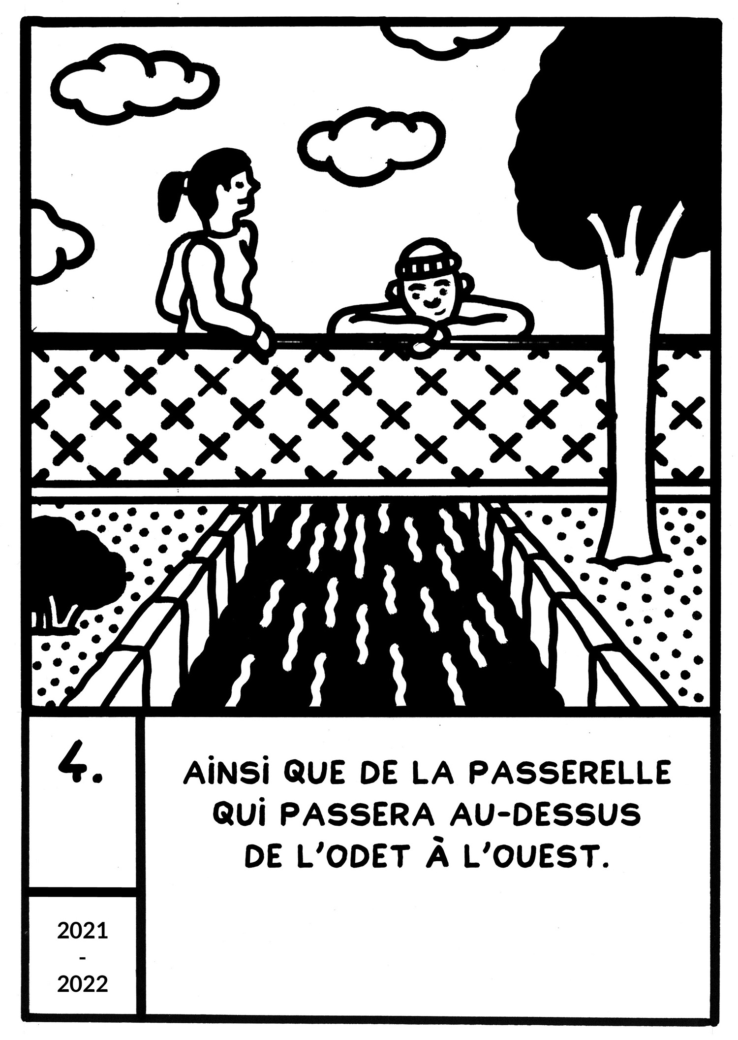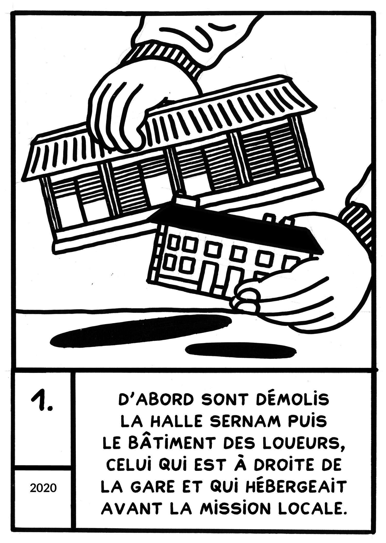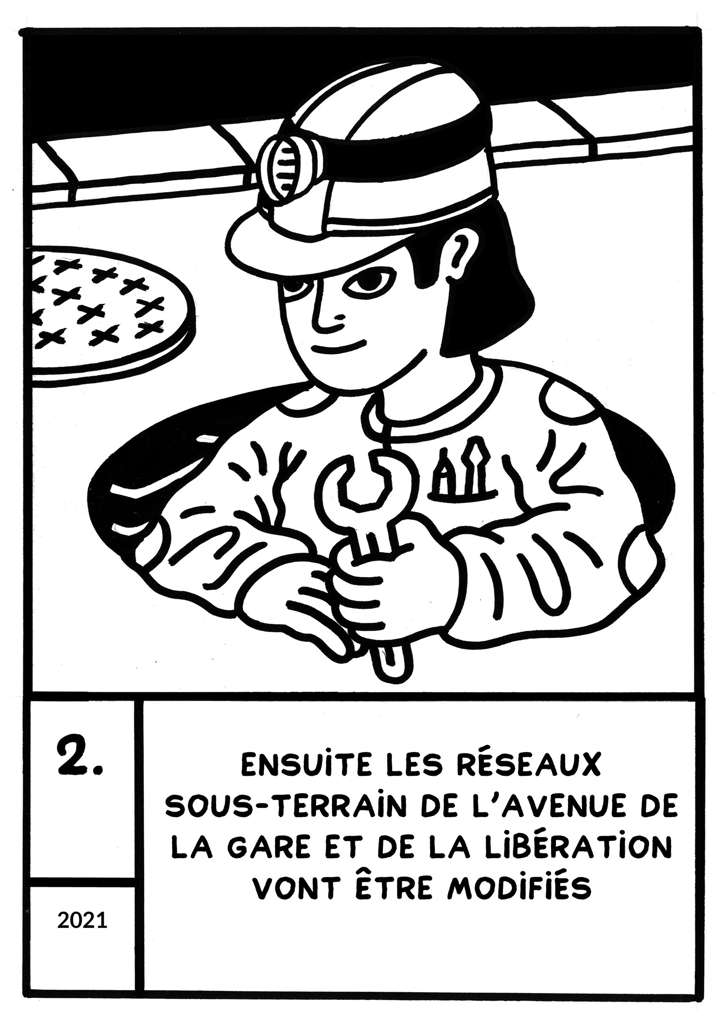 Avec notre partenaire A vrai dire la ville, nous jouons le rôle d’agent de liaison entre tous les acteurs qui gravitent autour de ce projet complexe : habitants, voyageurs, architectes, artistes, maitres d’ouvrage et partenaires (l’Union européenne, l’État, la Région Bretagne, le Conseil Départemental du Finistère, SNCF Gares&connexions, SNCF Réseau). C’est par nous que transite l’information sur le projet et son calendrier. Nous avons souhaité casser les codes de l’information travaux très institutionnelle en imaginant une identité graphique, un mode d’adresse et des outils simples qui rendent le projet accessible et joyeux. La Gazette, journal de bord du projet Gare-Parc, est diffusée deux fois par an. Elle informe sur le projet, les résidences artistiques et les actions menées dans le quartier. Elle est distribuée dans les boites aux lettres des riverains mais aussi chez les commerçants du quartier dans des présentoirs en bois spécialement conçus à cet effet. Outre ces éditions collectors et le compte FB du projet, le tableau de bord permet de centraliser les informations sur le projet Gare-Parc dans l’espace public sur le parvis de la gare.