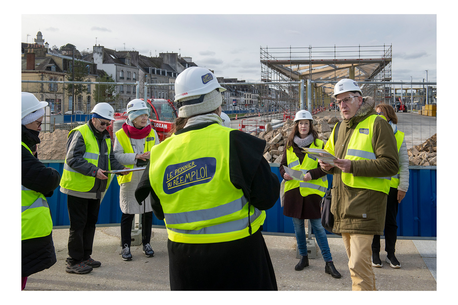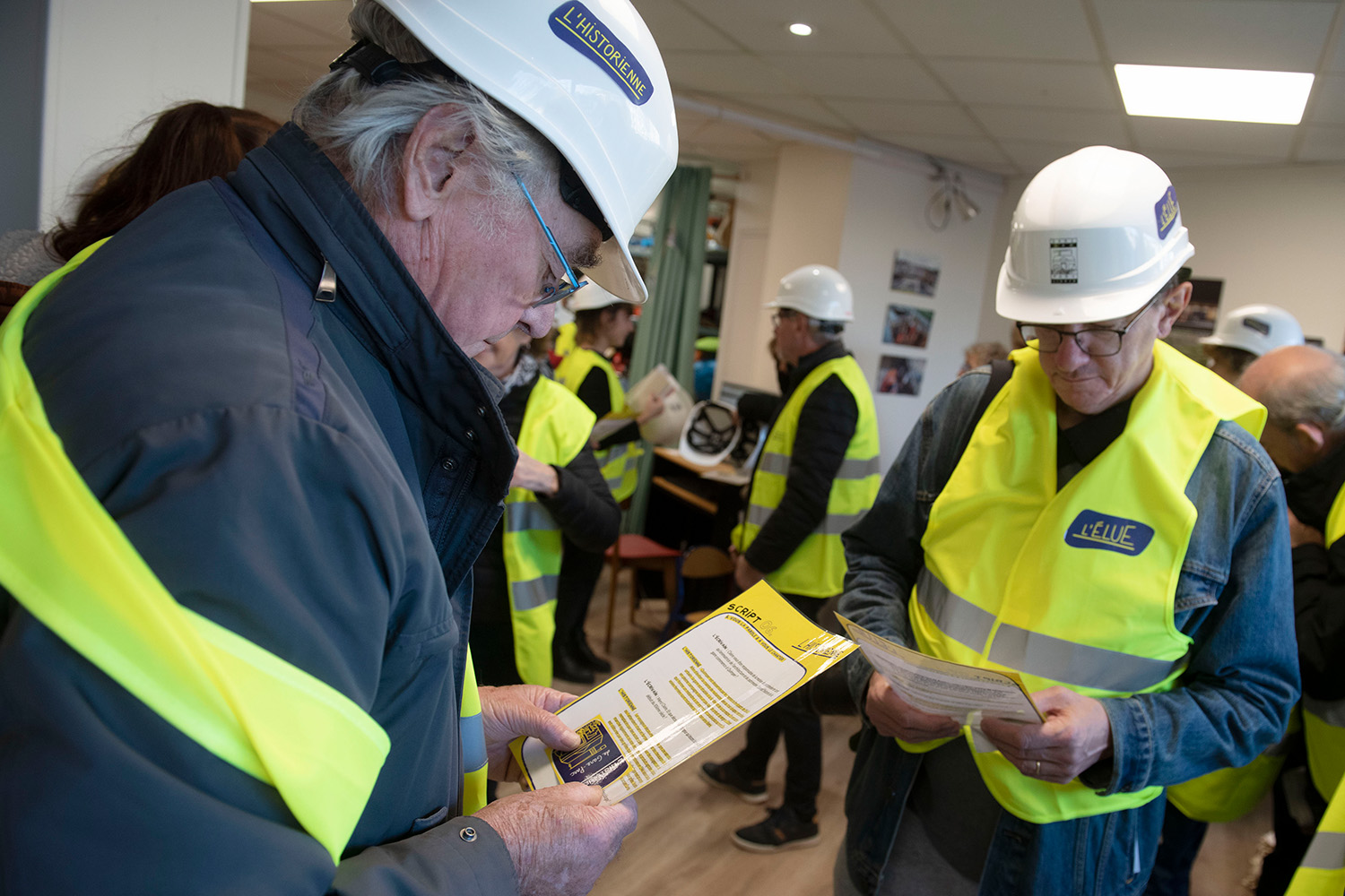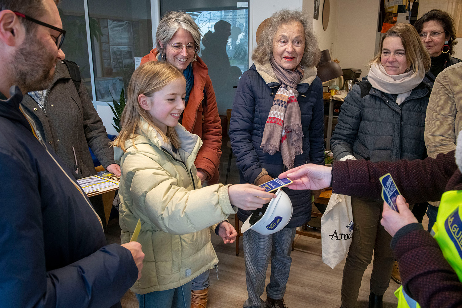 Dans le cas présent, le kit de visite de chantier participative propose aux participants d’endosser un rôle parmi les personnages de ce projet urbain d’envergure. Les règles du jeu sont simples : au début de la visite, les participant.e.s sont invité.e.s à piocher une carte personnage, mettre un casque et un gilet jaune floqué puis un script leur est remis. L’architecte de la passerelle, l’urbaniste, le concepteur lumière, l’ingénieur.e, l’historien.ne, l’urbaniste culturel, le conducteur de chantier, l’élu.e ou bien encore l’écrivain : tout le monde est là ? La visite de chantier peut commencer ! Les participant.e.s sont à la fois parties prenantes et animateurs.trices de cette visite pas comme les autres.
