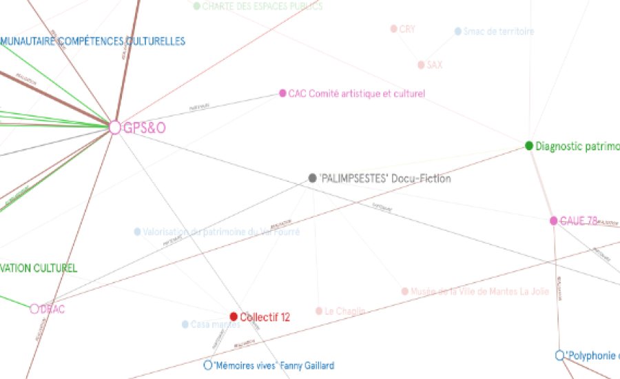 Nous avons proposé une méthode agile et collaborative pour construire cette stratégie culturelle que nous avons souhaité articuler pleinement à la question du territoire. Notre intuition : la culture est une ressource pour le territoire qui peut faciliter sa reconnaissance et sa construction, et réciproquement le territoire apporte des ressources (naturelles, économiques, urbaines…) qui nourrissent la dynamique culturelle. L’enquête nous a permis de prendre conscience de l’immensité de ce territoire et de sa difficulté de se penser comme un ensemble. Nous avons rencontré différents acteurs et lieux, pas seulement culturels, et mené des ateliers sur les attentes et envies communes pour poser les bases de cette stratégie que nous avons appelé le Grand Pari Culturel Seine et Oise. Avec le Master Ville Durable de l’Ecole de Design Nantes-Atlantique nous avons développé des outils inspirés du design thinking notamment une grande cartographie collaborative pour associer ces différents acteurs et élargir la question culturelle. Nous avons également proposé au Président de la communauté urbaine, à ses élus et aux agents responsables de faire un pas de côté et de découvrir un autre très grand territoire, Aix-Marseille, au cours d’un voyage d’études de trois jours qui a permis de découvrir plusieurs projets. Enfin, nous avons organisé un forum ouvert réunissant plus d’une centaine d’acteurs du territoire pour imaginer les Cent (micro)chantiers du Grand Pari Culturel Seine et Oise.