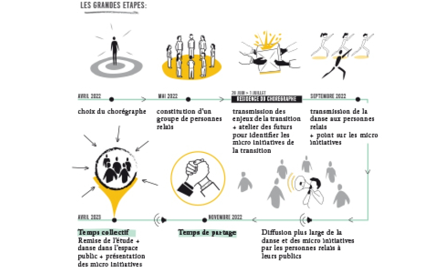 Pour se lancer dans le défi des transitions écologiques et sociales et s’adresser aux enfants et aux jeunes forces vives, il faut un mouvement joyeux qui fédère et donne envie d’en être ! Cela nous invite à repenser le cadre de la réunion publique pour s’adresser différemment aux habitants. A Lanester, la pratique de la danse façonne les équipements publics et marquent les esprits depuis longtemps. Nous invitons C.A.M.P, capsule artistique en mouvement permanent qui produit sur le pays de Lorient des artistes travaillant aux confins de la danse et de l’espace public, à repérer la perle rare qui inventera la danse mettant la ville en mouvement. La chorégraphe Raphaëlle Delaunay est alors invitée à composer une danse pour Lanester, une danse fédératrice et contextuelle pour rejoindre le mouvement des transitions, un hakka lanestérien à faire ensemble à chaque coup dur et victoire collective, au conseil municipal comme aux rentrées scolaires. Cette danse devient un prétexte pour aborder le sujet des transitions sous un nouveau jour. Un groupe d’agents relais s’en empare et lance la dynamique d’essaimage : on danse, on s’entraîne dans différents lieux de la ville, le mouvement est engagé.
