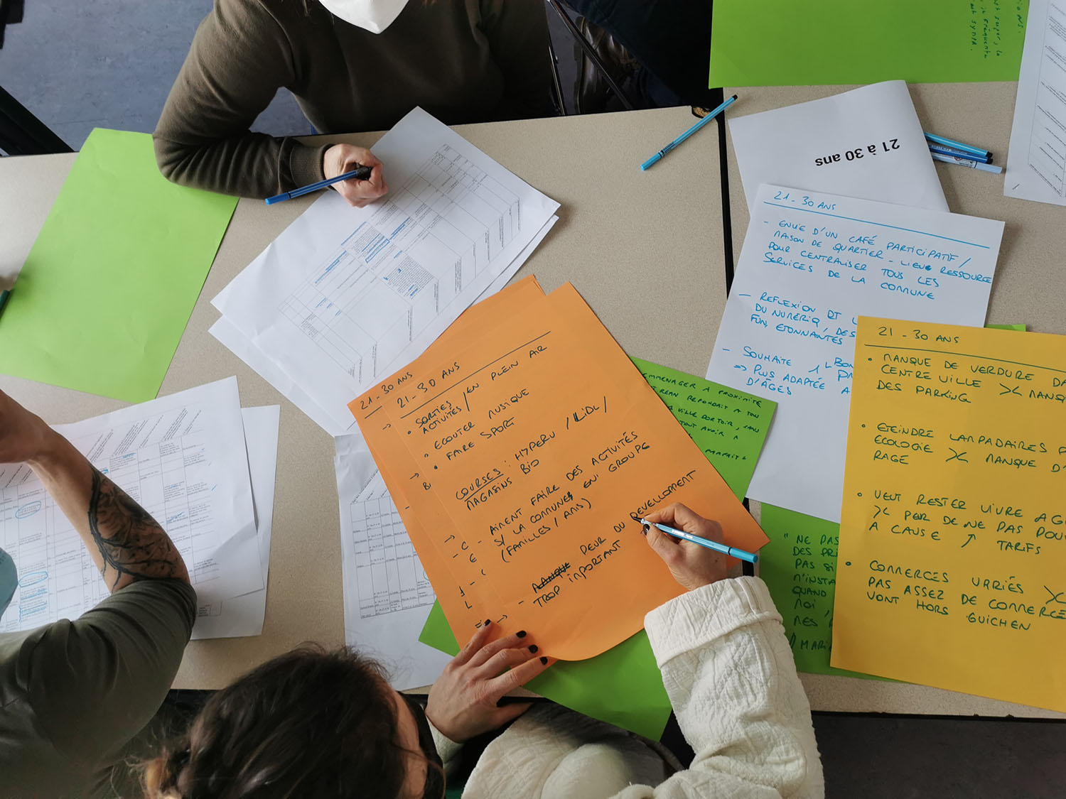 Pour éplucher les résultats, nous avons mené une séance de dépouillage collectif dans chaque ville où l’ensemble du groupe relais et les services des communes étaient invités à découvrir les réponses des habitants et à relever les points saillants, ce qui ressortait le plus ! Un bon temps de cohésion et de mise au travail entre services, habitants et acteurs locaux qui se côtoient mais ne se rencontrent pas forcément dans un cadre tiers.
