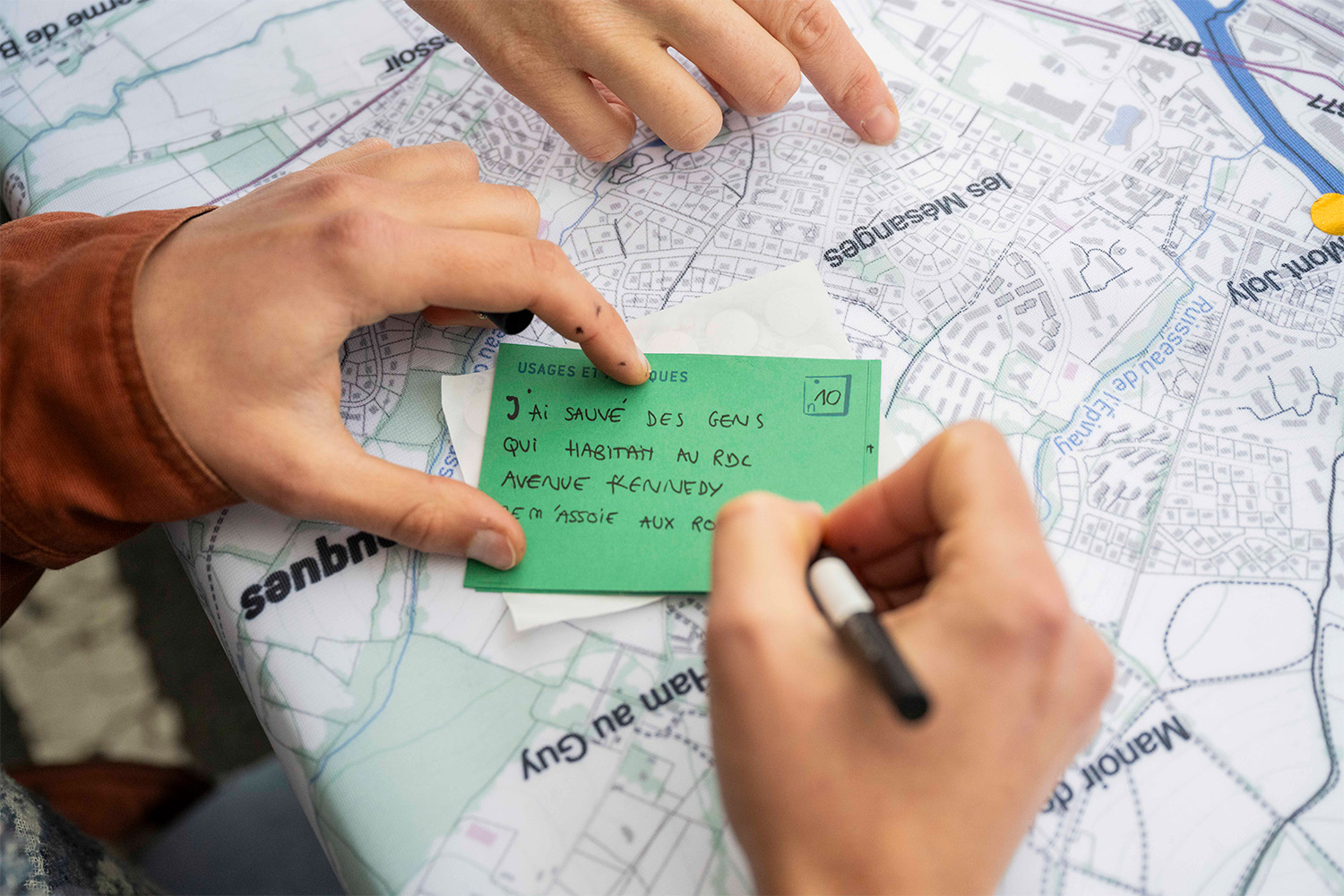 Pour recueillir les pratiques, les attachements des habitants au fleuve mais aussi les souvenirs et les peurs liés aux inondations, nous parcourons le territoire. Des micro-trottoirs se tiennent dans chaque commune sur les marchés, à la sortie d’écoles ou encore dans la zone commerciale pour rencontrer une diversité d’habitants et de salariés. L’enquête est complétée par un questionnaire en ligne et des traversées avec les acteurs associatifs, experts de leur territoire*.