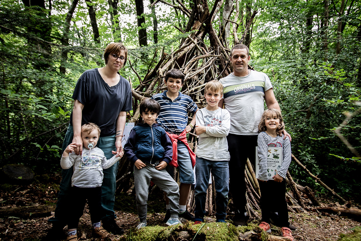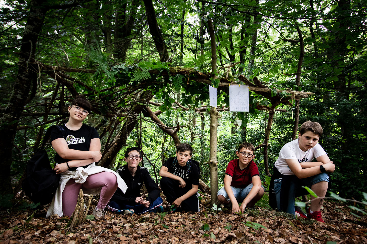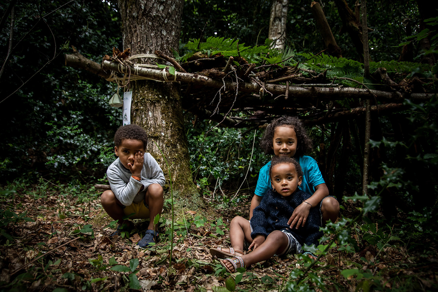 Une première activation se déroule pendant les Nuits des forêts, ces expériences artistiques qui ont lieu dans 150 forêts partout en France pour sensibiliser aux enjeux forestiers et promouvoir de nouveaux rapports au vivant. Soixante-cinq constructeurs, petits et grands, se pressent dans le Bois de Beauport pour participer au concours de construction de cabanes ! Les pierres vertes découvertes sous terre sont accrochées par les enfants à l’entrée des cabanes, comme une invitation.