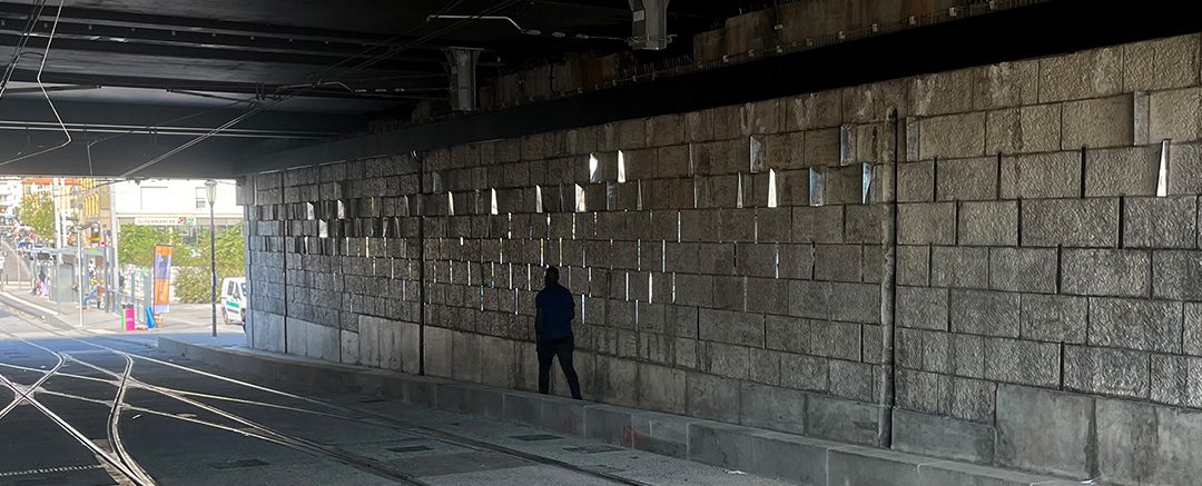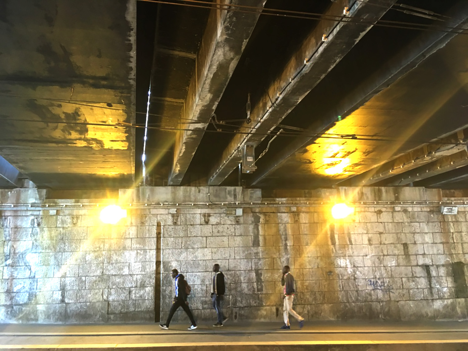 Une des pièce maîtresse de cette mue est la gare de Saint-Denis, ou plutôt le pôle multimodal Saint-Denis-l’île Saint-Denis, un des plus grands d’Ile-de-France qui accueille chaque jour plus de 90 000 voyageurs. Et pourtant dans cette mue pharaonesque prenant en compte la gare, ses abords, les espaces publics et mobilisant de multiples ingénieries, il y avait un oublié : le tunnel de la gare. Situé rue du Port sous les voies suspendues de RER, reliant la commune de Saint-Denis à l’île Saint-Denis, cet espace sombre, aux trottoirs trop étroits, ouvert aux vents et aux intempéries a été identifié par Plaine commune et la ville de Saint-Denis pour accueillir une œuvre artistique à la mesure du Grand Paris et de la 10ème gare de France.