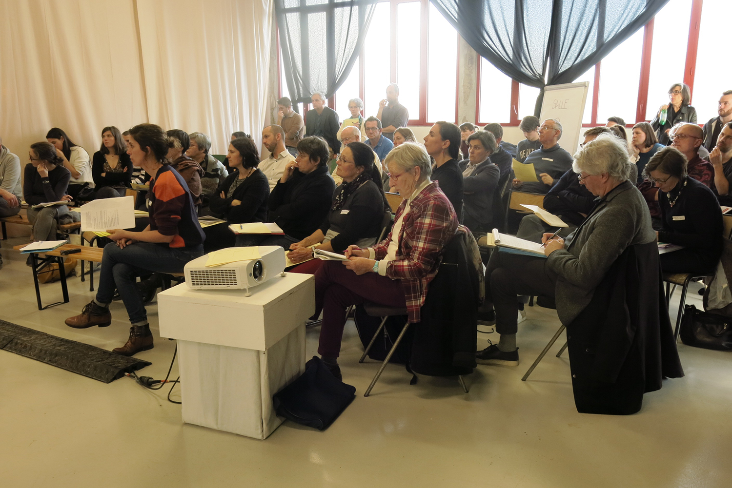 En janvier 2020, un séminaire a réuni aux Ateliers du vent la communauté des acteurs de la Vallée de la Vilaine. Les conclusions ont ouvert des pistes à explorer qui nous ont amenées à analyser plusieurs expériences inspirantes, notamment le Parc naturel urbain de Strasbourg que nous avons visité et l’Hôtel Pasteur. Fortes de ces nouveaux apports, nous avons une fois de plus arpenté la Vallée de la Vilaine en nous questionnant autour des enjeux agricoles du territoire lors d’une « Traversée des sols » imaginée en lien avec la fête Du champ à l’assiette.