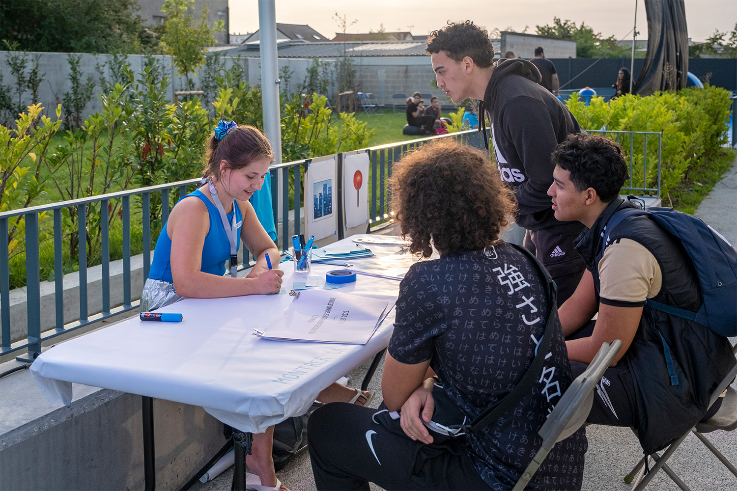 Nager, sauter, jouer mais aussi danser, manger, faire du cardio boxe… Tout baigne à la piscine Claire Supiot ! Cette soirée imaginée en coopération avec les associations et le service jeunesse permet d’expérimenter de nouveaux usages. Au programme : initiation au cardio-boxe, concours de tirs au but, espace de restauration, DJ set et récits d’eau. De nombreux jeunes et des familles sont au rendez-vous pour en profiter.