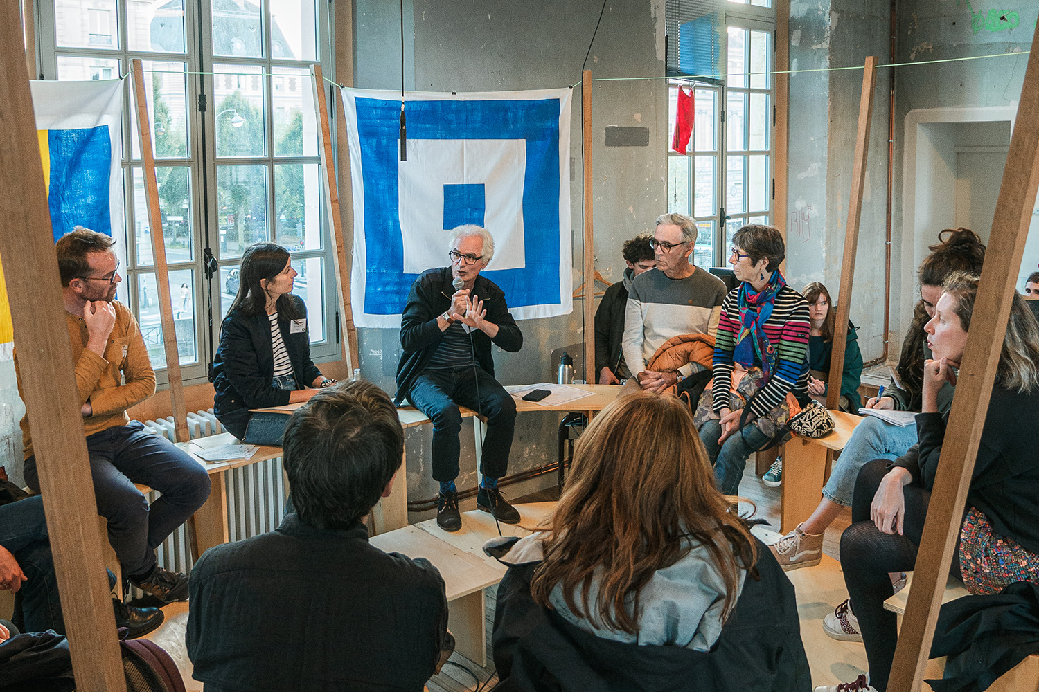 « Est-ce qu’on dépasse les bornes ? » est une réactivation de l’Université flottante imaginée dans le cadre de l’Année de la Vilaine avec L’Ecole Parallèle Imaginaire. Ce dispositif artistique qui permet de récolter les savoirs et savoir-faire d’un territoire s’adapte cette fois à la théorie du Donut, servant à mesurer notre capacité à ne pas dépasser les limites planétaires tout en respectant les besoins humains fondamentaux. C’est une façon d’amorcer un diagnostic citoyen qui sera mené sur plusieurs années sur le territoire rennais. Organisé à l’Hôtel Pasteur et augmenté de nombreux ateliers menés par des associations et chercheur.euses du territoire, « Est-ce qu’on dépasse les bornes ? » a permis de créer un espace foisonnant d’échanges et de nourrir une bibliothèque de savoirs qui illustre pleinement l’ambition participative et accessible de cet ambitieux projet de recherche.