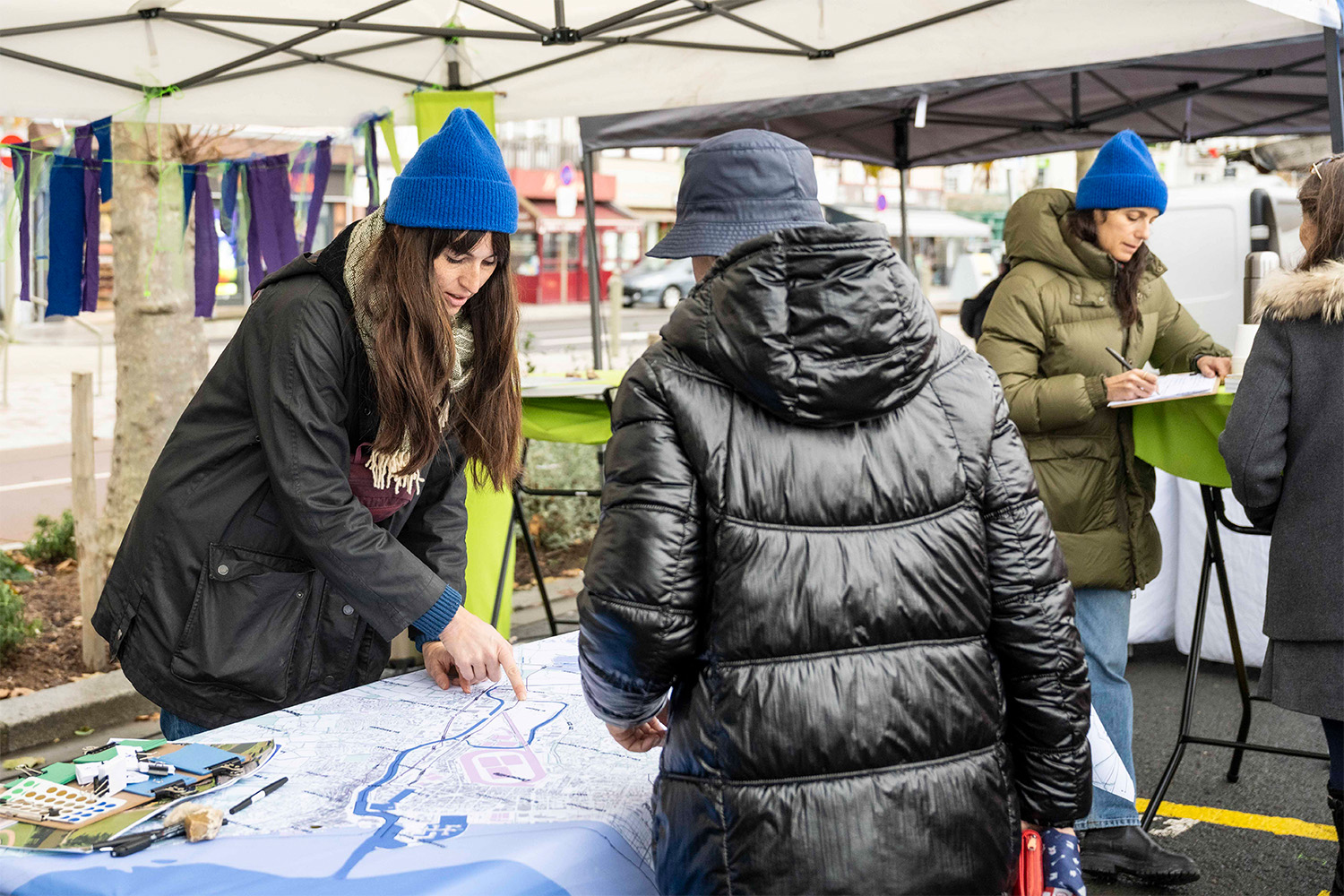 Pour recueillir les pratiques, les attachements des habitants au fleuve mais aussi les souvenirs et les peurs liés aux inondations, nous parcourons le territoire. Des micro-trottoirs se tiennent dans chaque commune sur les marchés, à la sortie d’écoles ou encore dans la zone commerciale pour rencontrer une diversité d’habitants et de salariés. L’enquête est complétée par un questionnaire en ligne et des traversées avec les acteurs associatifs, experts de leur territoire*.