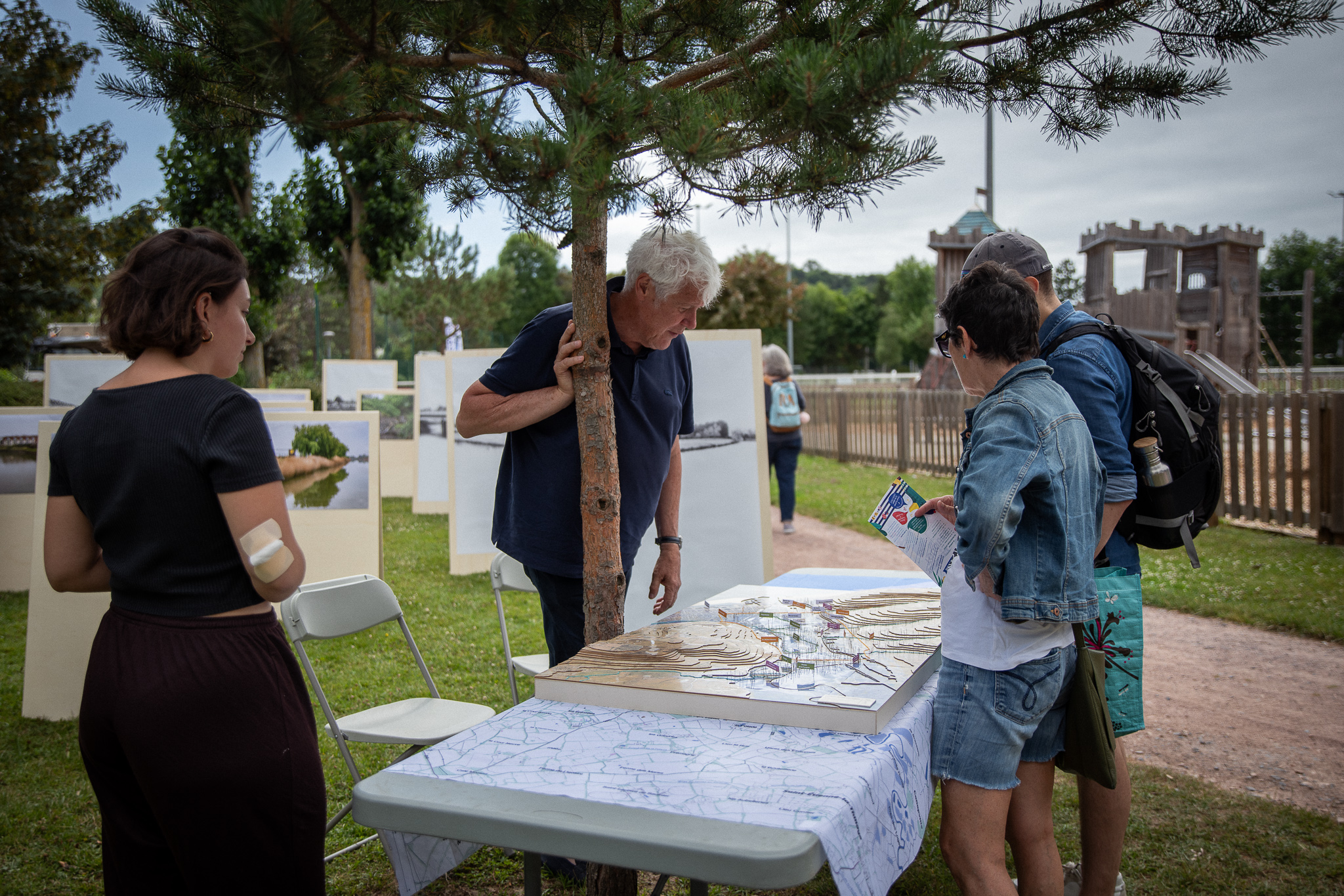 À cette occasion, un studio photo mené par Lucie Jean propose aux habitant·es de mettre en scène des images de futurs désirés pour la Touques et ses berges. Par le jeu de la mise en scène et de l’imaginaire, ces portraits deviennent autant de projections possibles du fleuve à venir, nourrissant la réflexion engagée autour du plan guide.
