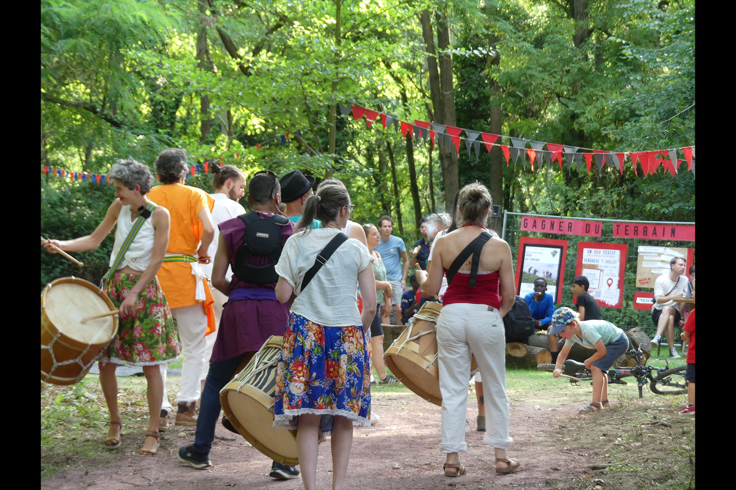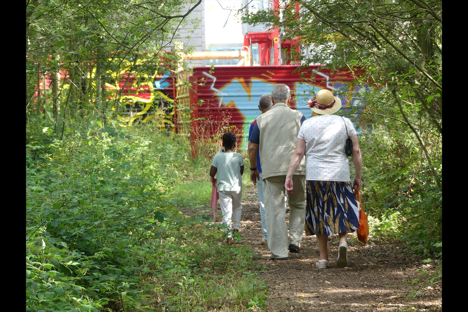 Au cours de 5 ateliers, nous avons réunis habitant.e.s et salarié.e.s lors de séances d'arpentage dans la friche pour explorer les vestiges du passé militaire et industriel ensevelis sous la végétation et nous avons testé collectivement des usages (pique-nique, sport, espace pour les tout-petits). Au programme : une enquête auprès de celles et ceux qui pratiquent les lieux au quotidien, la découverte des pépites de la friche, une chasse au trésor, une journée dédiée aux enfants, et la création d’un nouvel espace de rencontre.