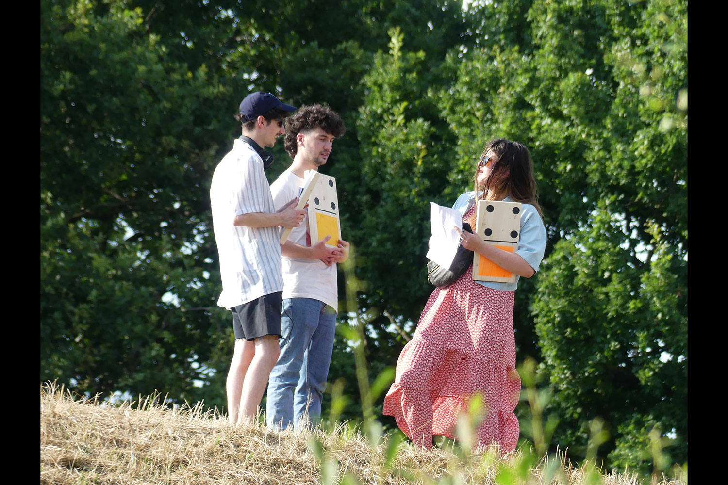 Pour conclure cette démarche, la friche paysagère s'est transformée en terrain de jeu à échelle 1 le temps d'un évènement artistique, ludique et festif imaginé avec le collectif d'artistes, de sportives et de chercheuses GONGLE. Une partie de dominos sous la forme d'un urbex en équipe mêlant à la fois exploration d'un parc en devenir et nouvelles situations de rencontre.