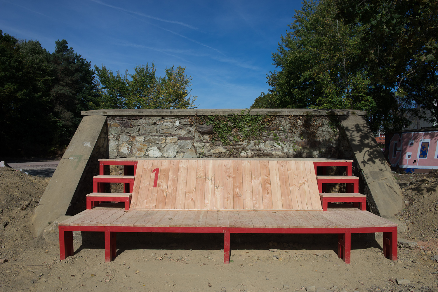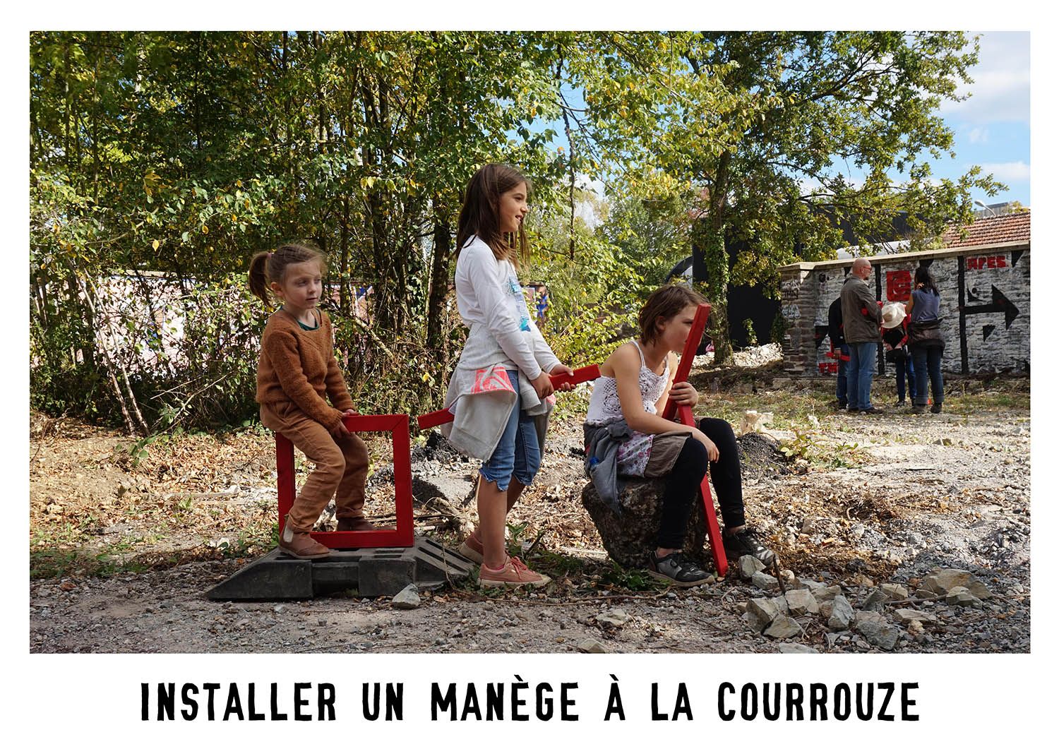 Ces ateliers ont permis de définir les accessoires nécessaires pour mener à bien les défis, les espaces à investir, les participants concernés. Au cours d’un grand week-end festif, les défis ont été relevés par des équipes constituées pour l’occasion. Cinq points de vue conçus par le collectif Tempête ont été matérialisés et répartis dans l’espace permettant aux équipes de prendre la photo du défi qu’elles souhaitaient mettre en scène. Au cours de cet événement plus d’une centaine d’images ont été réalisées et affichées dans le Pavillon de la Courrouze rendant très lisible les défis favoris. Ces représentations ont permis de prototyper les activités et usages souhaités dans l’espace public. Dans un second temps, nous avons analysé ces matériaux pour produire une « carte des préconisations des conditions à préserver et des aménagements et actions à réaliser » sur ce cœur de quartier qui a nourri le projet du studio Secchi-Vigano.