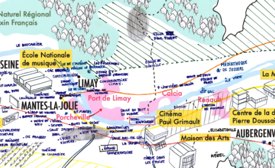 Nous avons proposé une méthode agile et collaborative pour construire cette stratégie culturelle que nous avons souhaité articuler pleinement à la question du territoire. Notre intuition : la culture est une ressource pour le territoire qui peut faciliter sa reconnaissance et sa construction, et réciproquement le territoire apporte des ressources (naturelles, économiques, urbaines…) qui nourrissent la dynamique culturelle. L’enquête nous a permis de prendre conscience de l’immensité de ce territoire et de sa difficulté de se penser comme un ensemble. Nous avons rencontré différents acteurs et lieux, pas seulement culturels, et mené des ateliers sur les attentes et envies communes pour poser les bases de cette stratégie que nous avons appelé le Grand Pari Culturel Seine et Oise. Avec le Master Ville Durable de l’Ecole de Design Nantes-Atlantique nous avons développé des outils inspirés du design thinking notamment une grande cartographie collaborative pour associer ces différents acteurs et élargir la question culturelle. Nous avons également proposé au Président de la communauté urbaine, à ses élus et aux agents responsables de faire un pas de côté et de découvrir un autre très grand territoire, Aix-Marseille, au cours d’un voyage d’études de trois jours qui a permis de découvrir plusieurs projets. Enfin, nous avons organisé un forum ouvert réunissant plus d’une centaine d’acteurs du territoire pour imaginer les Cent (micro)chantiers du Grand Pari Culturel Seine et Oise.