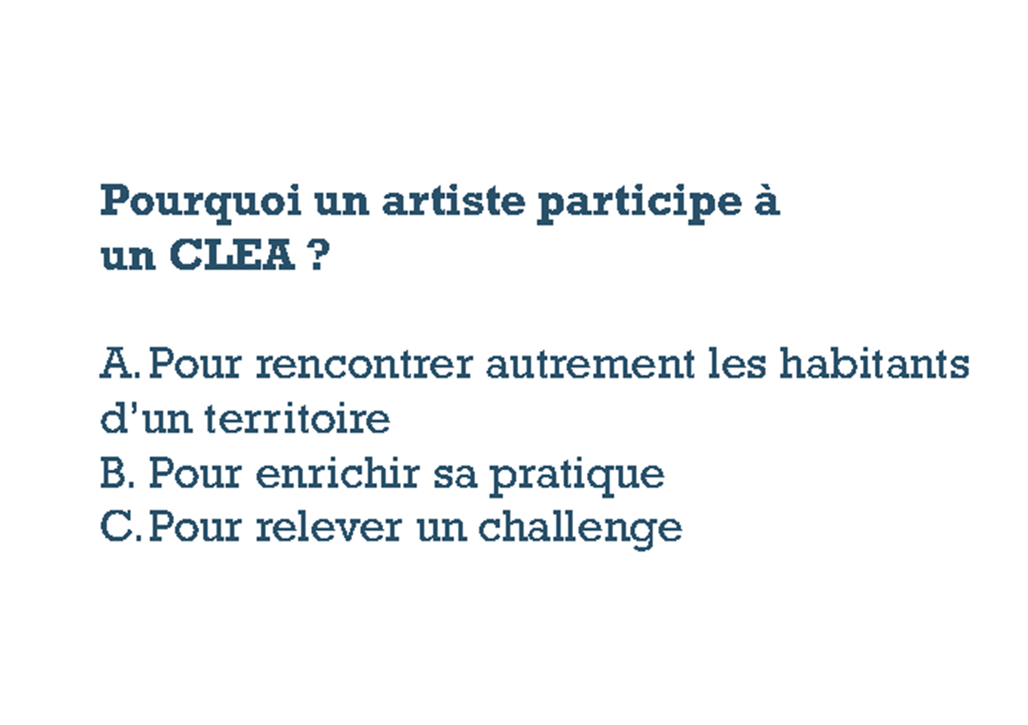 Le quizz permet de traduire de façon décalée le vocabulaire hyper spécialisé de ce type de dispositifs et de révéler les caractéristiques du territoire. Nous utilisons le prototype lors de rendez-vous, ateliers et rencontres.