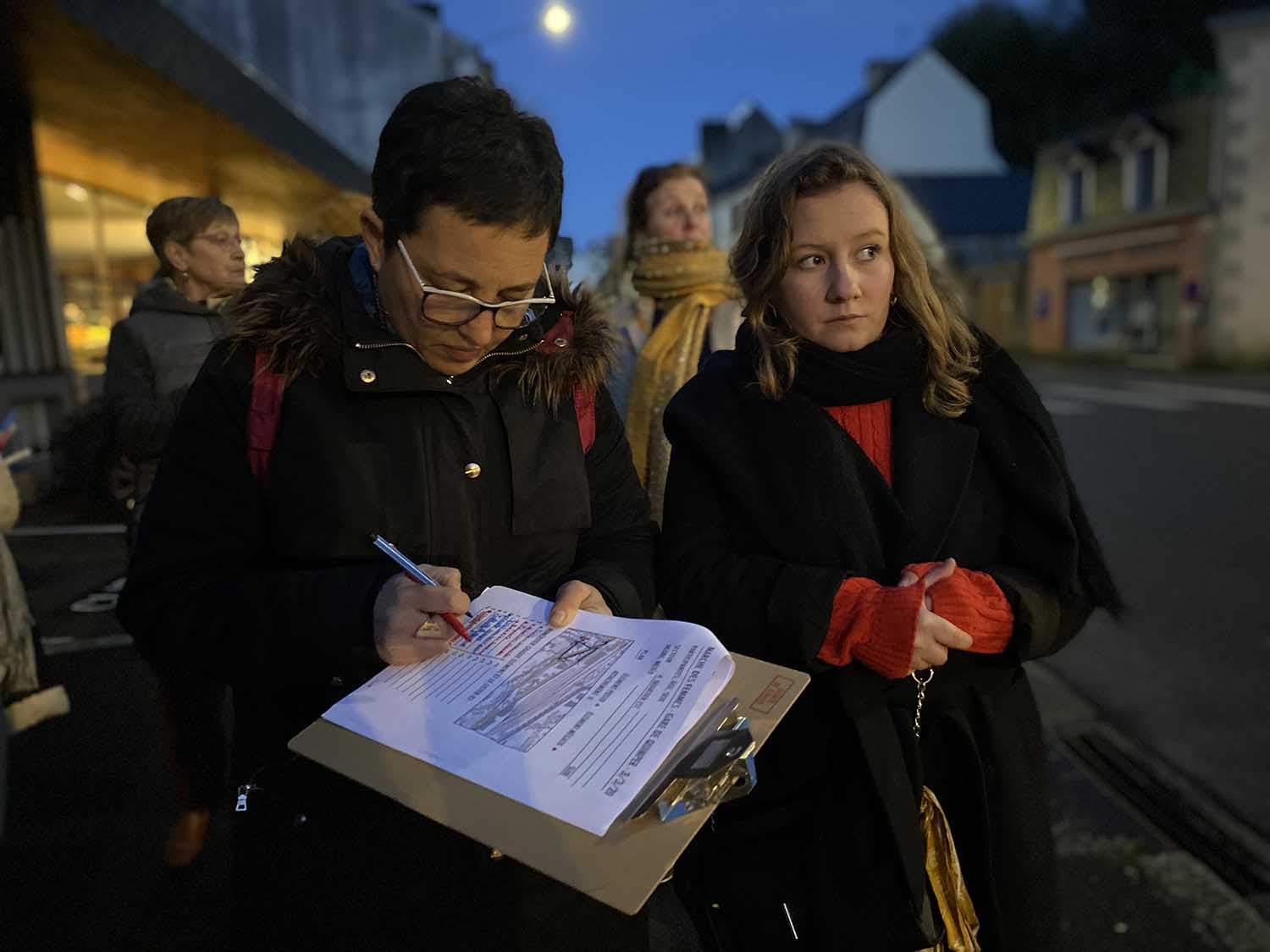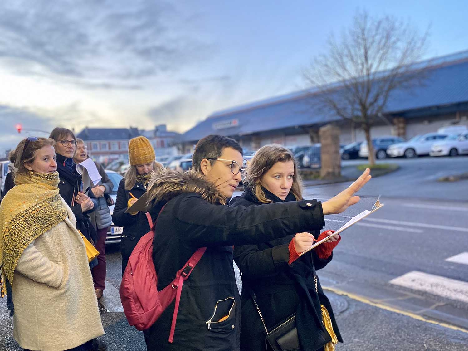 Cette expérimentation a pris la forme de deux marches d’une vingtaine de femmes mêlant questionnaire, observation, mise en scène collective et atelier d’analyse.