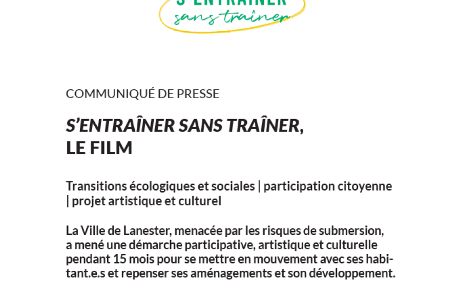 Tout au long de cette démarche, le vidéaste Sylvain Marmugi documente la transmission de cette danse qui éveille le débat sur les transitions écologiques et sociales. Soutenu par le Ministère de la Culture Drac Bretagne et diffusé pour la première fois en janvier 2024, le film documentaire S’entraîner sans traîner, premier pas d’une ville vulnérable retrace les grandes étapes de ce projet singulier et montre la difficulté de se projeter dans la bifurcation écologique pourtant nécessaire.