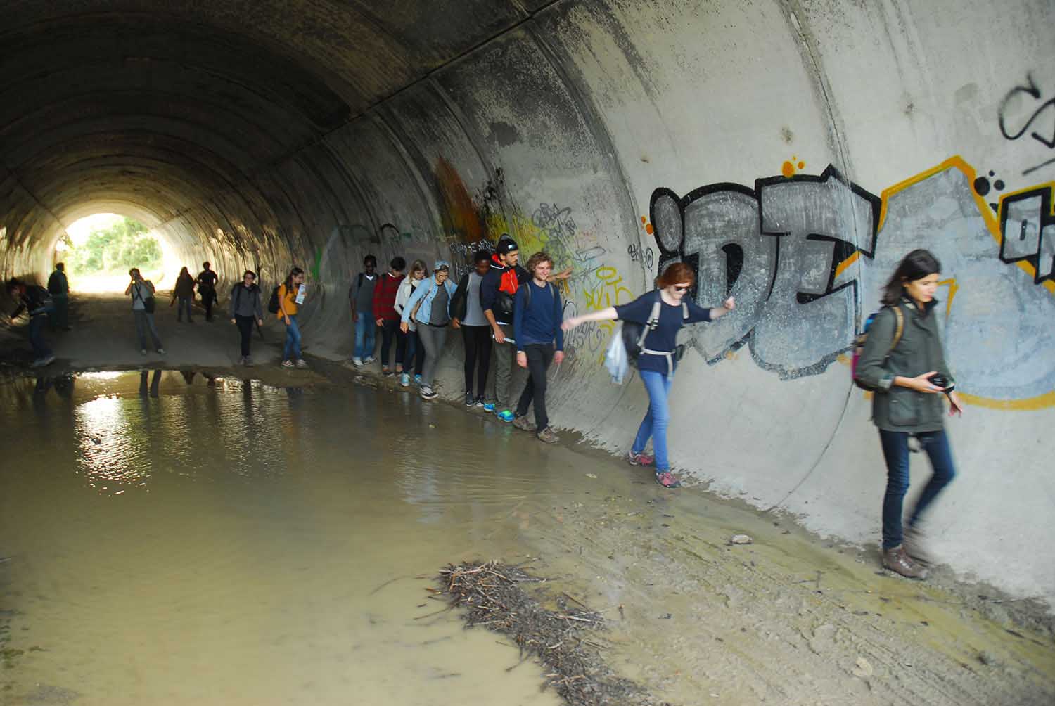 En septembre 2016, nous avons mis en place avec Le Voyage métropolitain et les agents de l’AEV une traversée bivouac sur la promenade de la Dhuis, long ruban de 27 km surplombant l’aqueduc construit par Napoléon III pour alimenter Paris en eau courante, qui en fait la plus longue liaison verte de la Région Ile-de-France.