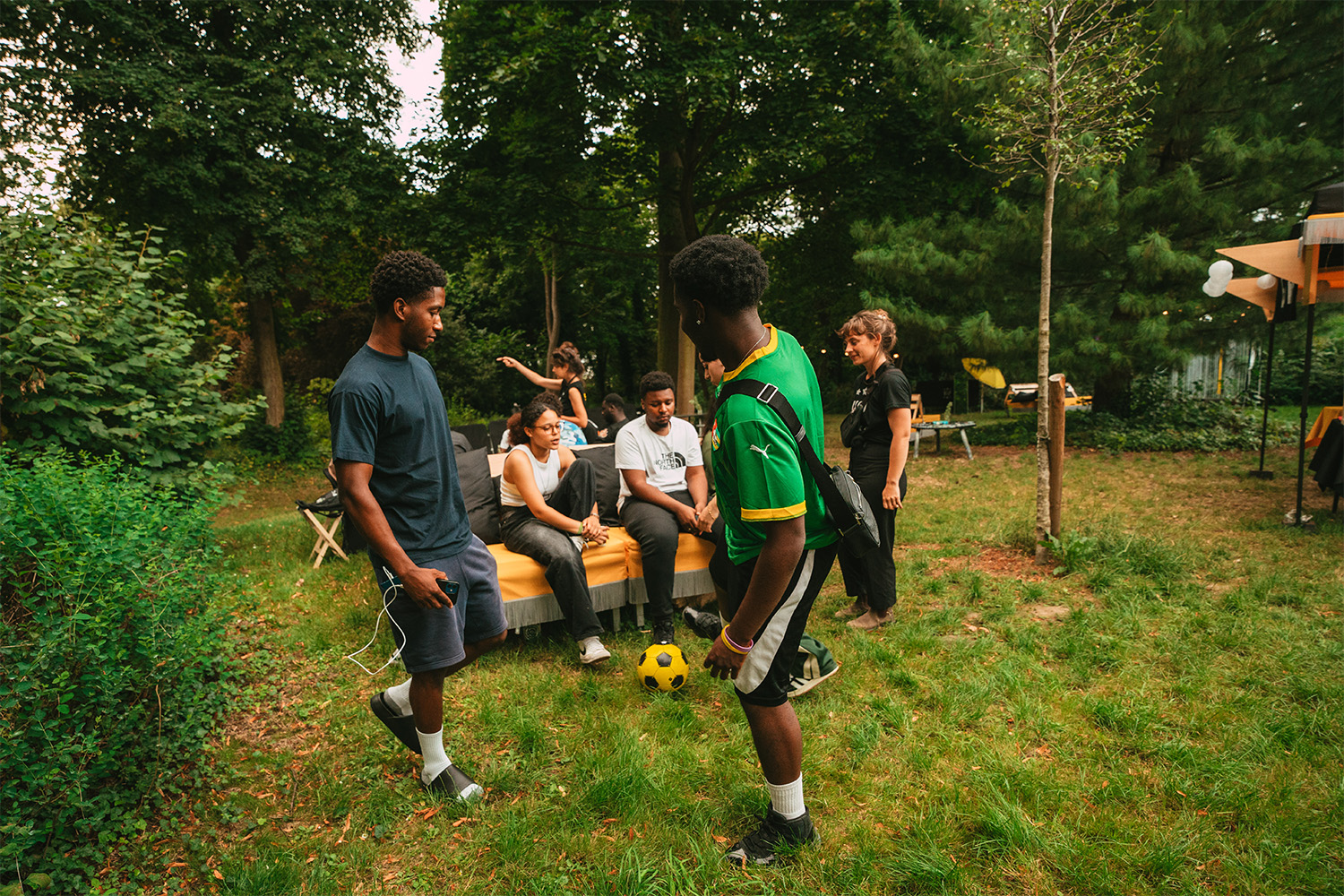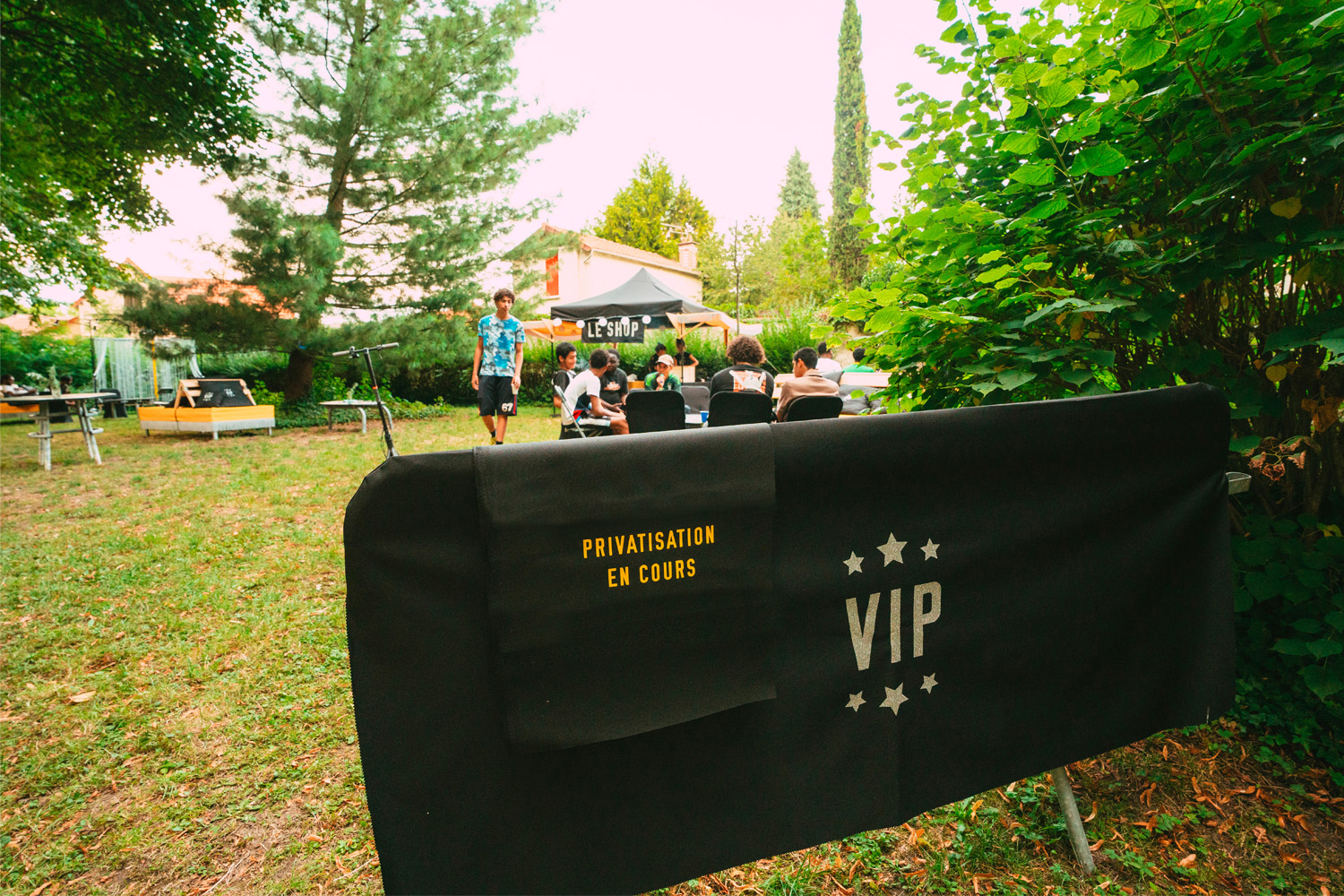 Le Carré VIP est un espace calme, serein, environné de nature. C’est un lieu à soi, un QG réservé aux jeunes où on peut se poser, chiller sur les canapés, scroller, écouter de la musique, faire la fête, se prendre en vidéo, être ensemble, faire beaucoup avec pas grand chose, laisser sa trace, floquer son bob, goûter des pâtisseries, partager des pizzas, préparer son cocktail, construire du mobilier et changer l’aménagement du lieu pour s’y sentir encore mieux. On peut privatiser le Carré avec son groupe d’ami.es et choisir sa programmation.