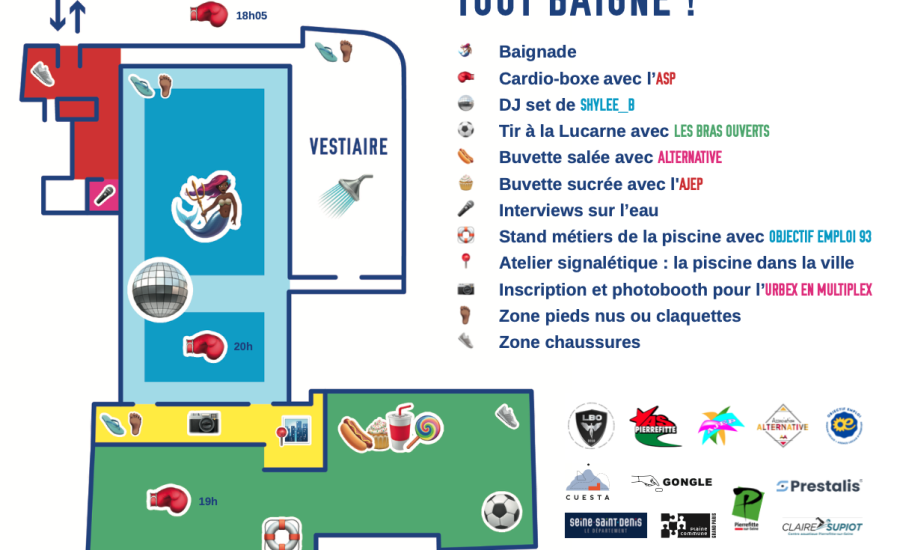 Nager, sauter, jouer mais aussi danser, manger, faire du cardio boxe… Tout baigne à la piscine Claire Supiot ! Cette soirée imaginée en coopération avec les associations et le service jeunesse permet d’expérimenter de nouveaux usages. Au programme : initiation au cardio-boxe, concours de tirs au but, espace de restauration, DJ set et récits d’eau. De nombreux jeunes et des familles sont au rendez-vous pour en profiter.