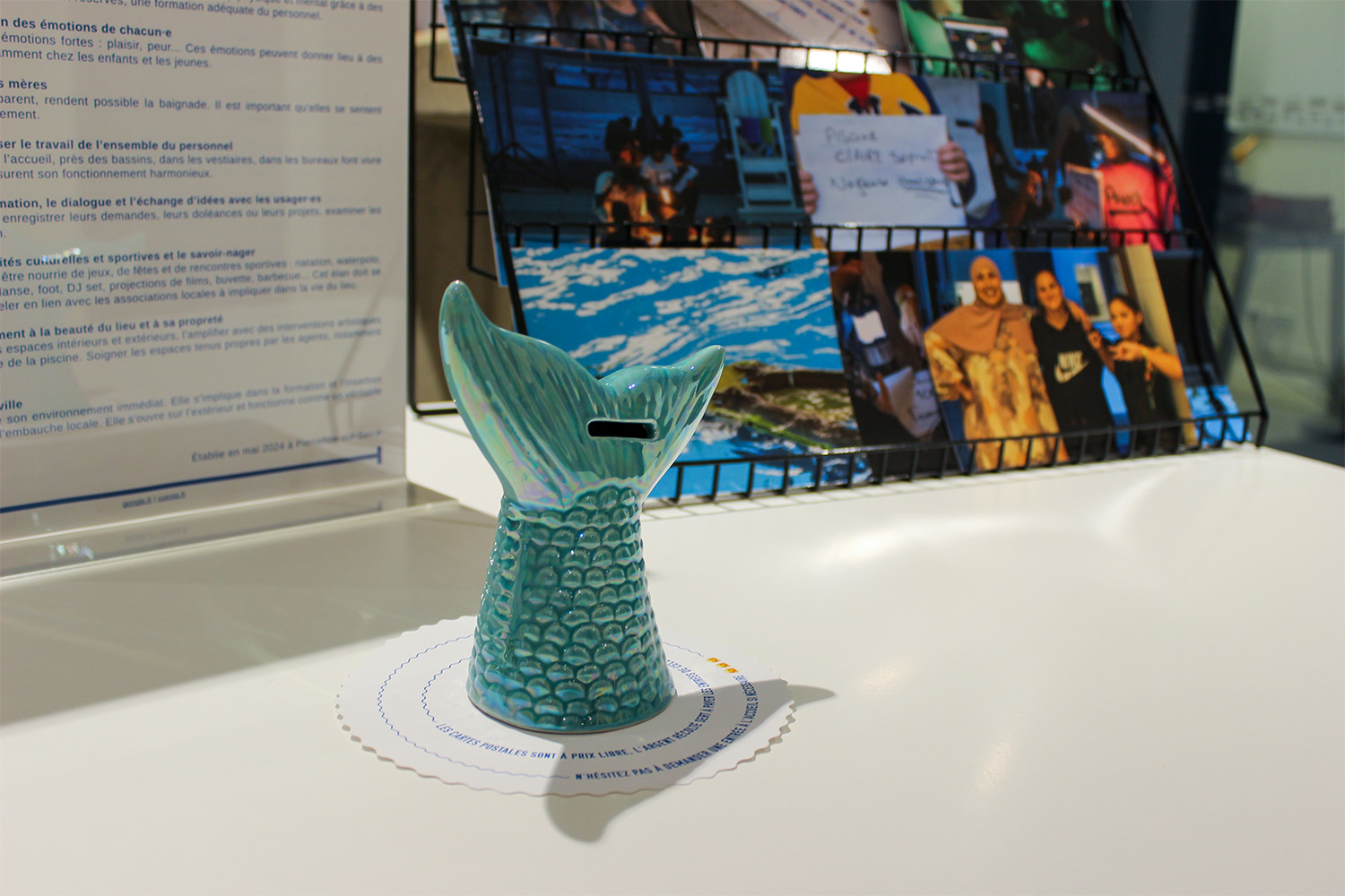 Les temps d’ateliers, de fêtes ont nourri l’ébauche d’une charte des usager.es de la piscine. Discutée et ajustée avec le personnel du centre aquatique, elle est formalisée et affichée dans le hall d’accueil. Elle existe aussi sous la forme d’un jeu de la piscine du futur : jeu de coopération qui permet de poursuivre les échanges autour des grandes thématiques abordées tout au long du projet (accessibilité, place des femmes, des personnes en situation de handicap, des jeunes, nouveaux usages, convivialité, …). Cette édition nourrit les suites du projet au centre aquatique de Pierrefitte et peut inspirer les piscines du territoire.