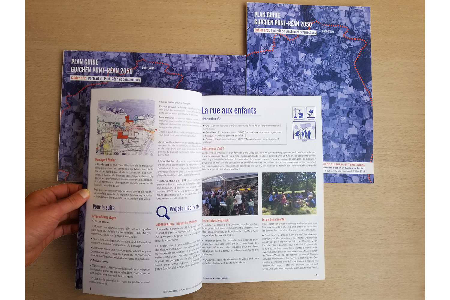Deux cahiers qui présentent les portraits et les perspectives de transformation de Guichen et de Pont-Réan,