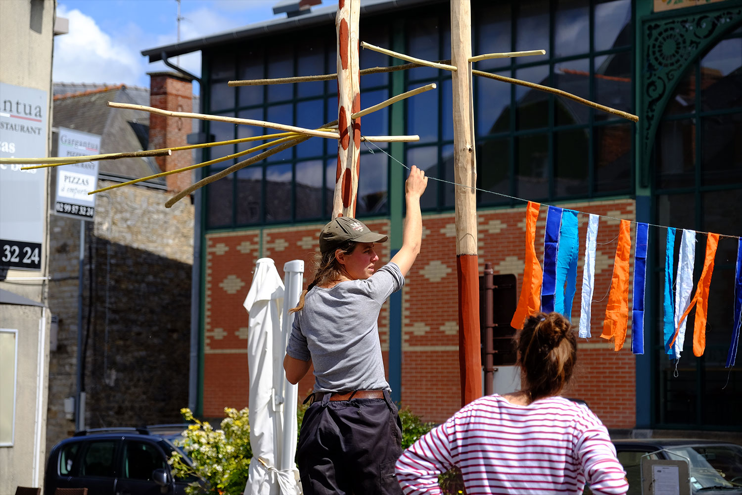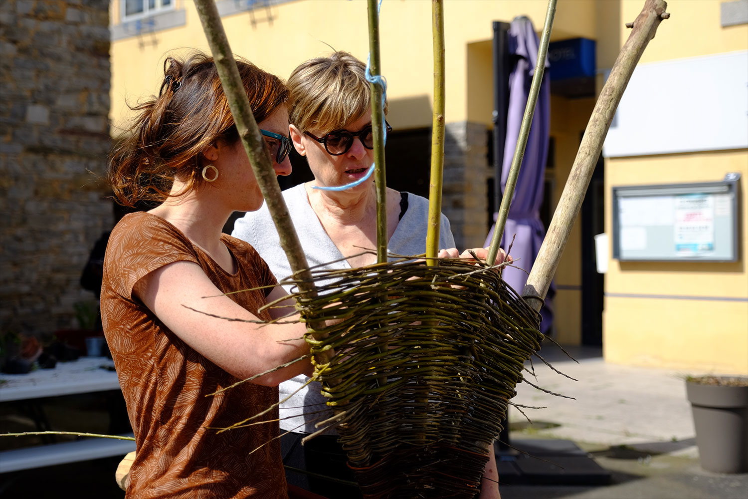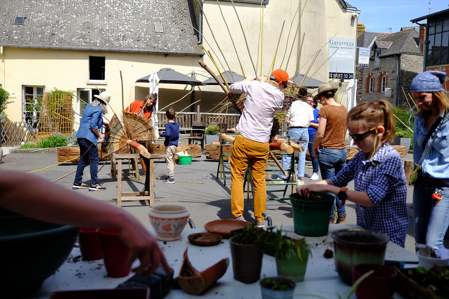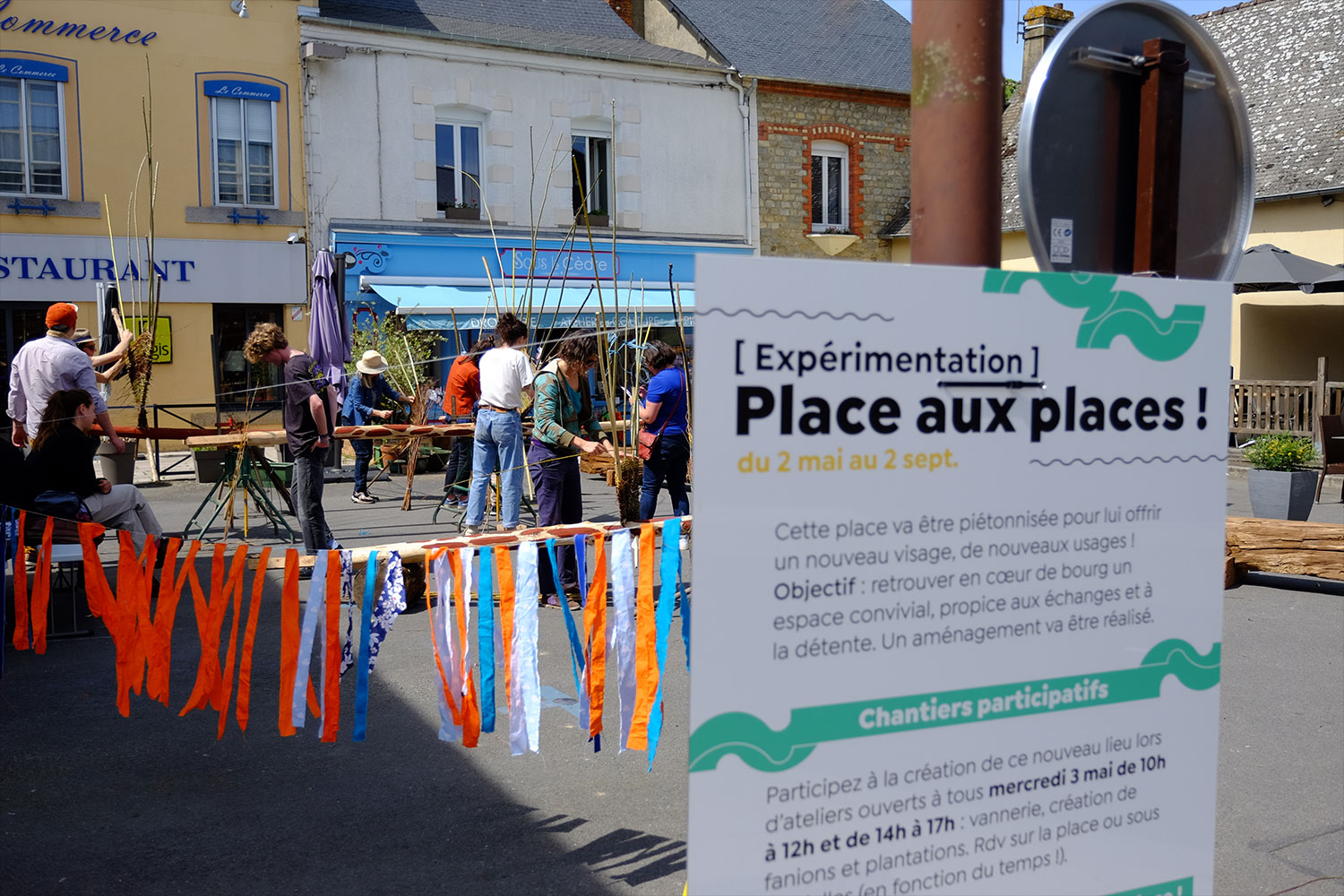 Plantation, vannerie, dessin, construction de fanions : les habitant.e.s de Guichen ont pu participer à la réappropriation des espaces publics. Pour l’occasion, la place a été surnommée Place Madeleine Desroseaux, le nom d’une poétesse bretonne ayant habité Guichen.