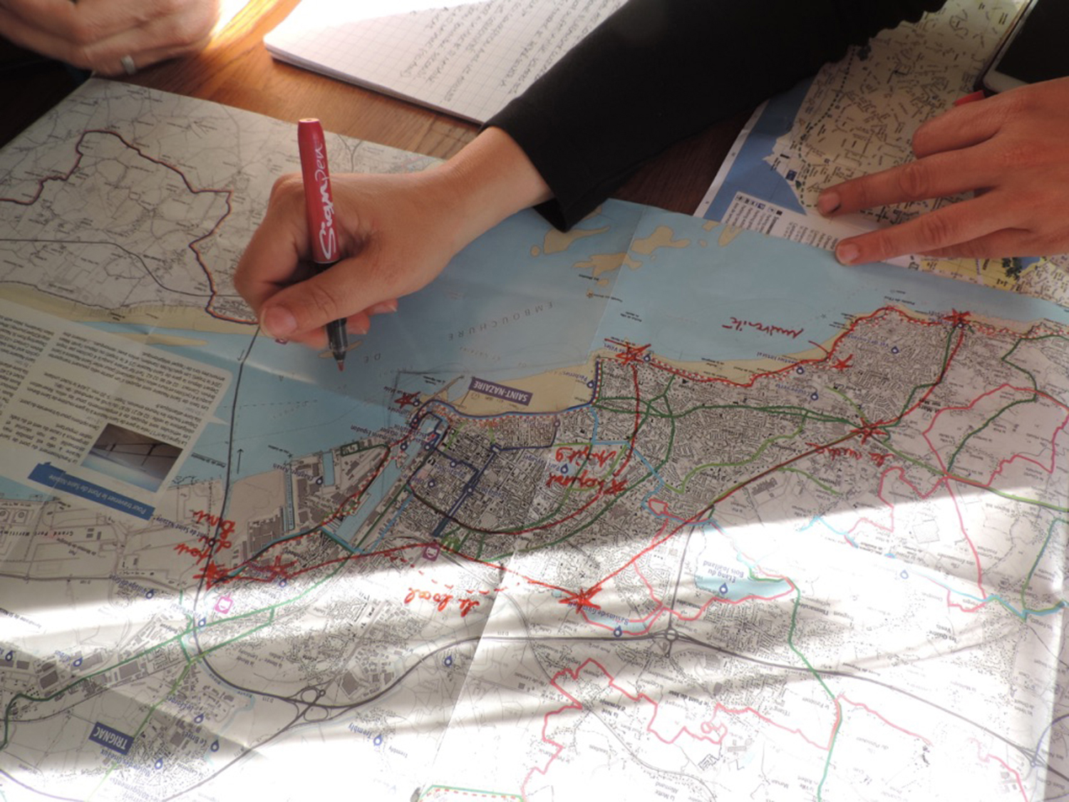 Premier point d’étape : un workshop réunissant une soixantaine de personnes, élus, opérateurs culturels, urbanistes, acteurs touristiques, artistes, acteurs sociaux, médiateurs culturels et urbains… que nous embarquons dans l’aventure du montage d’une prochaine inauguration d’un parcours d’arts publics à Saint-Nazaire. Avec eux nous définissons l’art public à Saint-Nazaire qui devient alors pluriel. Nous partageons des expériences venues d’ailleurs qui renouvellent notre regard sur l’art dans l’espace public, l’enrichissent de valeurs sociales, environnementales, politiques, élargissent ces formats et cadres de mise en œuvre. Ensemble, nous imaginons le parcours, les contenus de cette inauguration : ce qui existe, ce qu’il faut inventer. Nous posons les bases de la traversée « On ne part pas de 0 !, du km 0 à la plage de M. Hulot » et réinventons le format de l’étude.