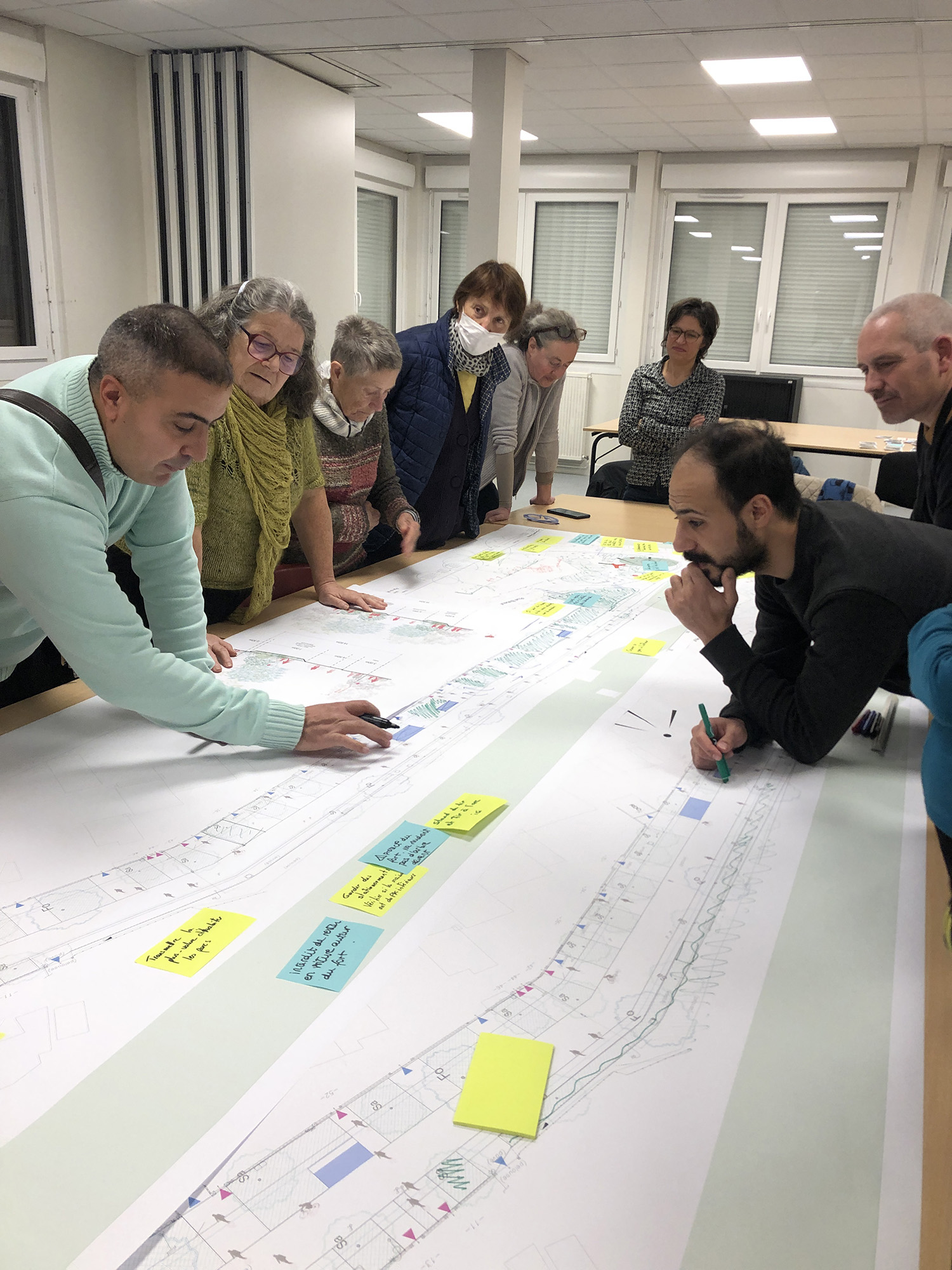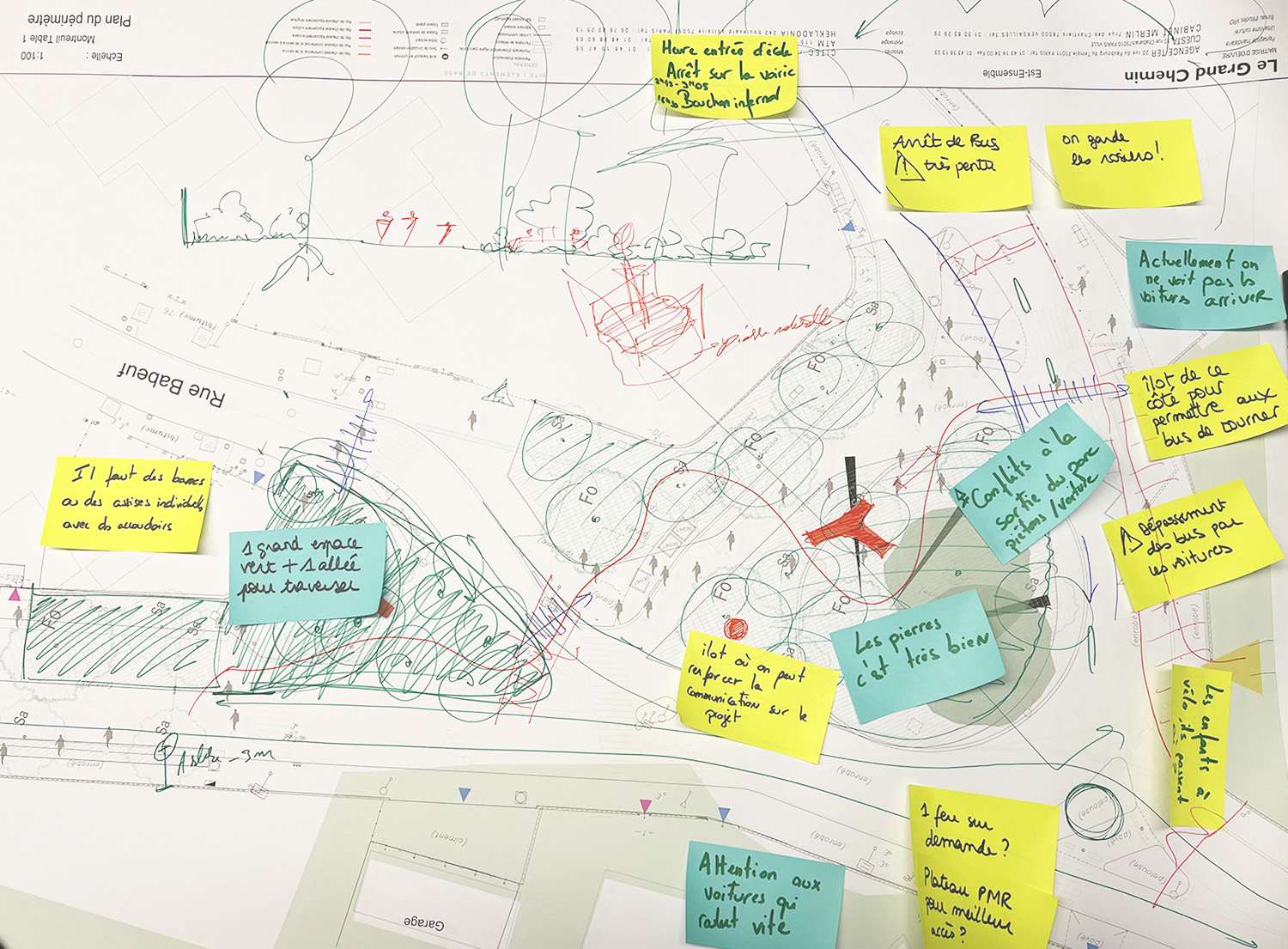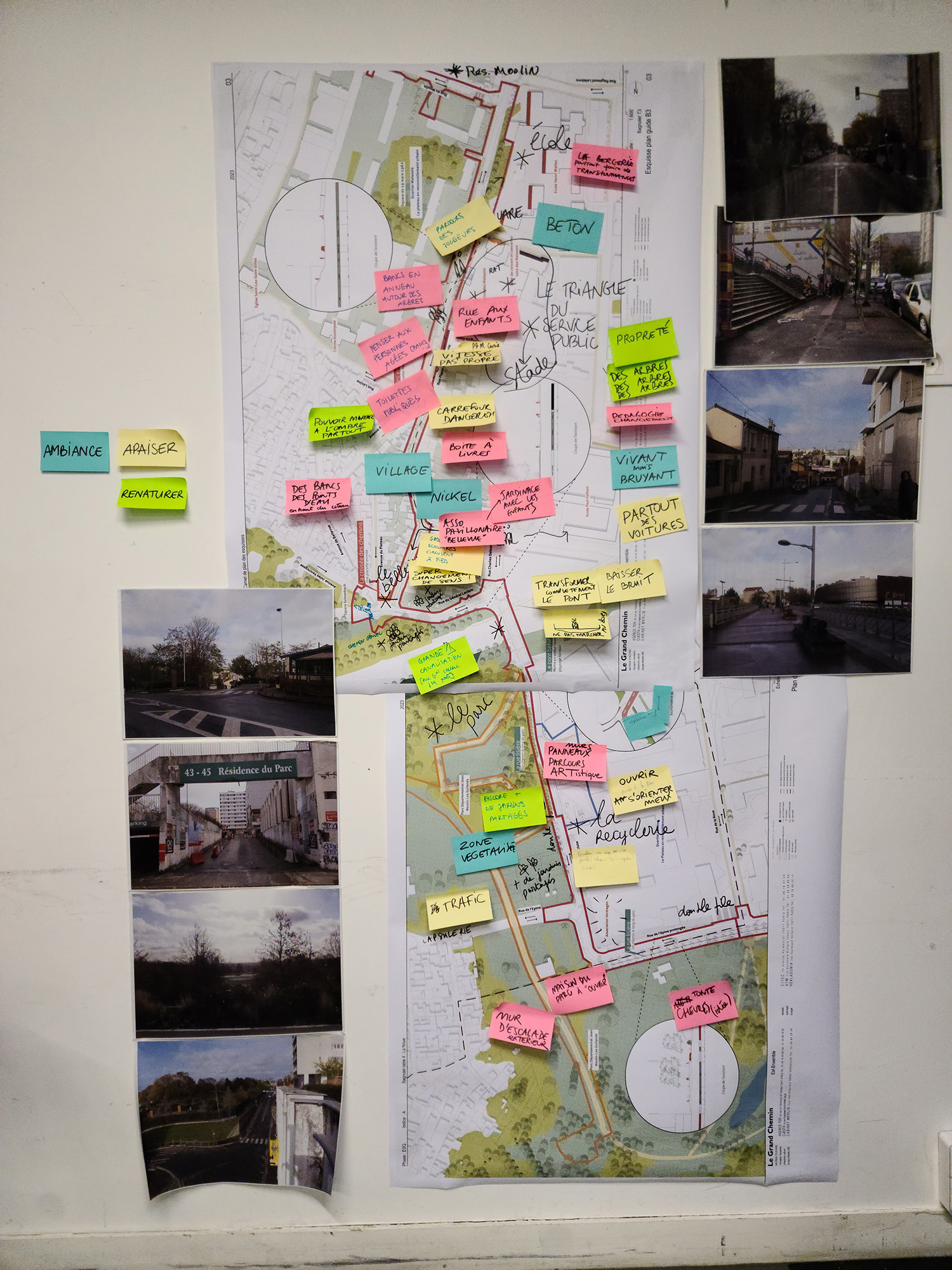 Deux plénières d’information, quatre arpentages sur le tracé du Grand Chemin et quatre ateliers sur table dans différents quartiers de Montreuil, en lien avec les antennes de quartier et les acteurs locaux, ont permis de recueillir les réactions des Montreuillois, leurs envies et expériences ainsi que de confronter les différents scénarios étudiés à leur expertise d’usagers.
