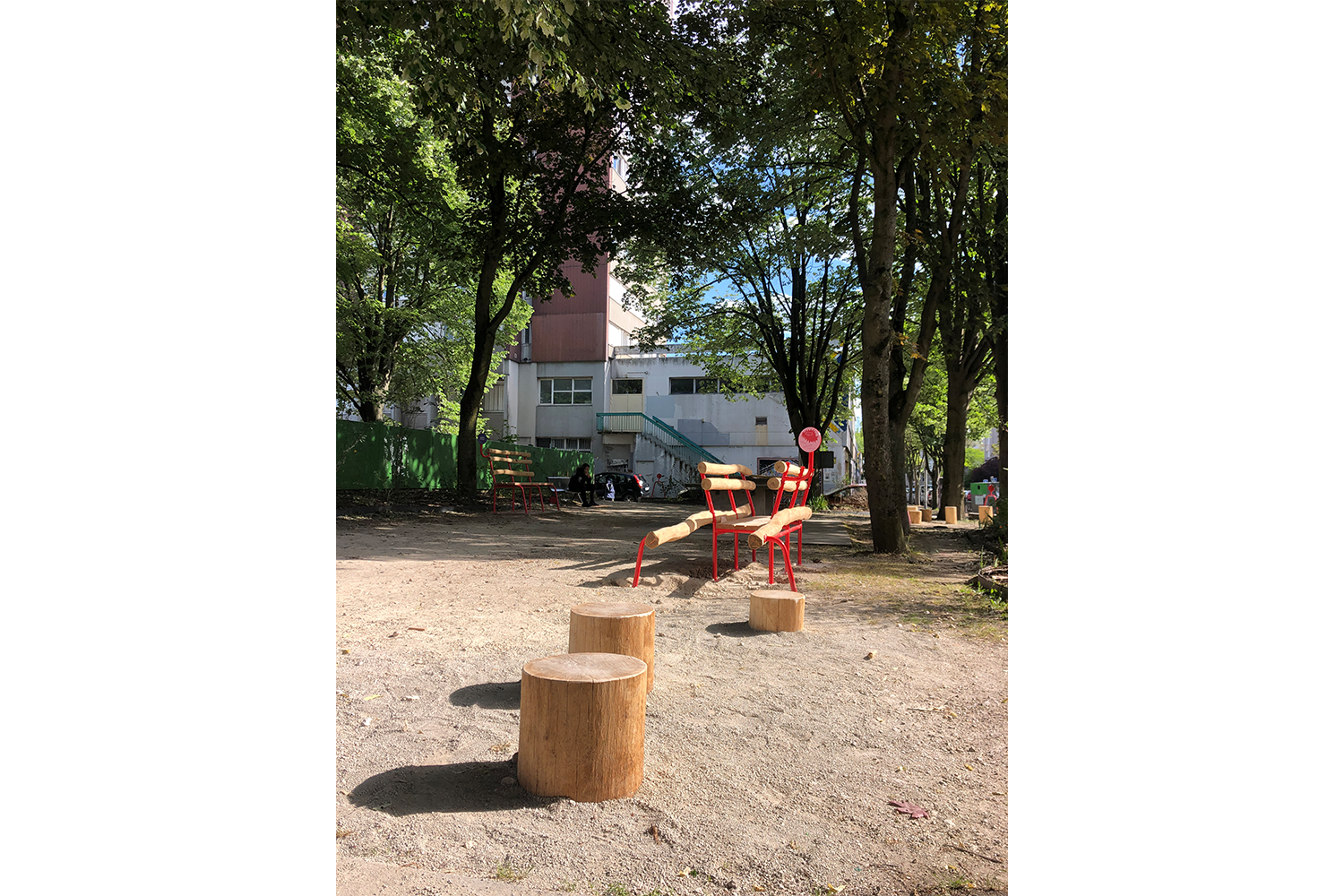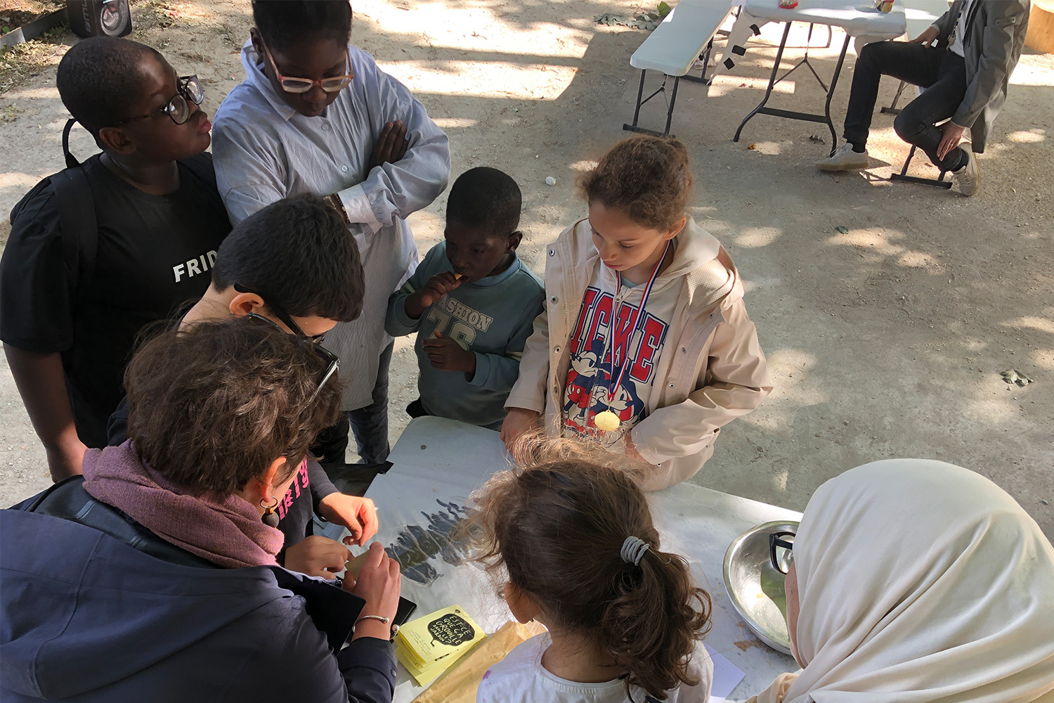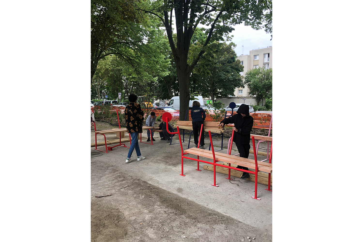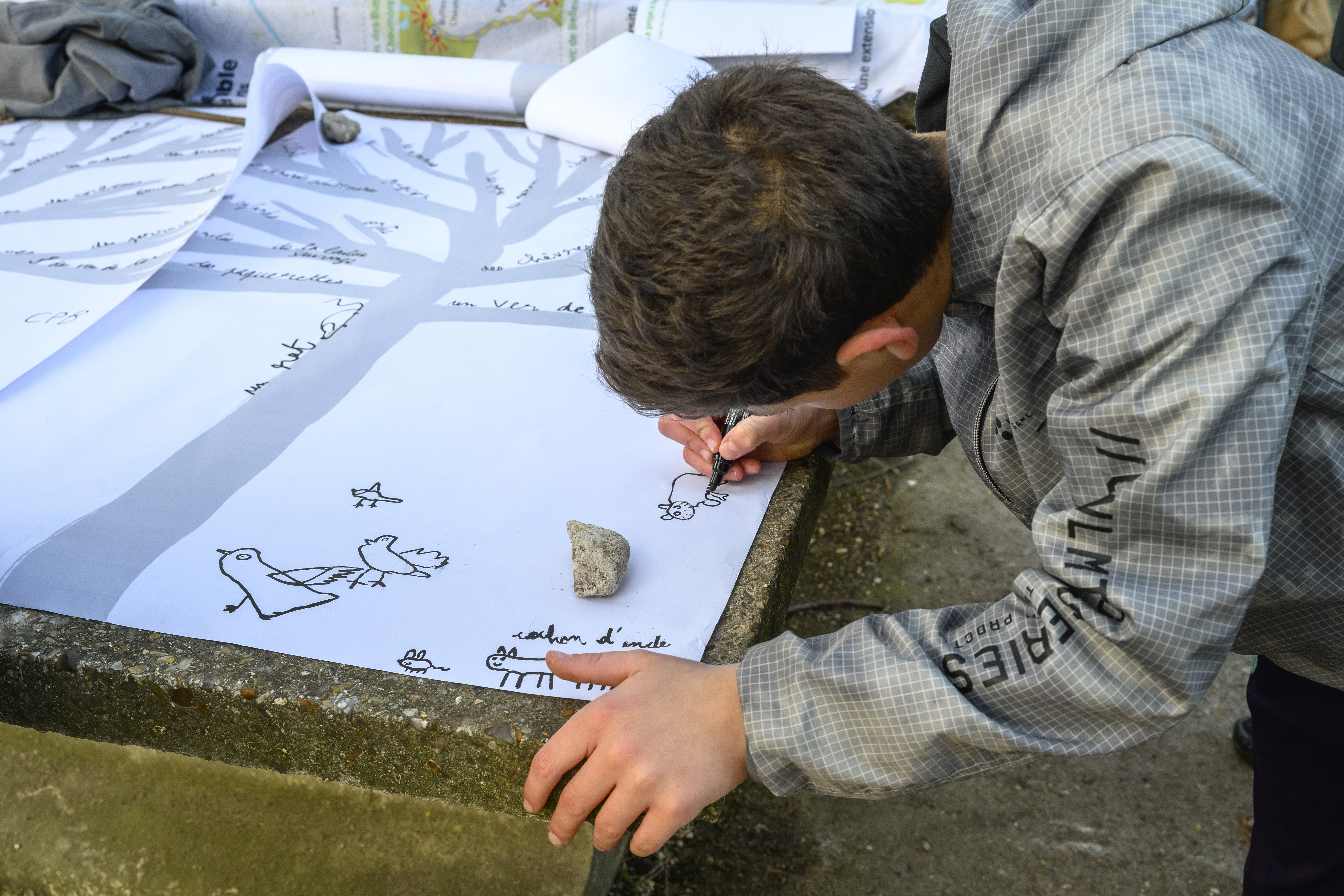 En 2025, une action pilote à Bagnolet permet de faire exister dès à présent Le Grand Chemin rue Pierre et Marie Curie, dans le quartier des Malassis. Avec le Collectif ETC et l’artiste Maïda Chavak, nous lançons une démarche participative pour accompagner de nouveaux usages sur le parvis de l’école Henri Wallon. A partir de la présence emblématique de grands arbres, nous tissons un récit autour du jardin forestier et lançons un chantier ouvert de plantations. Des partenariats sont noués avec les services de la ville, le centre social, les associations du quartier, l’école, pour se projeter dans la gestion de ce futur espace planté au cœur d’un quartier en complète transformation urbaine.
