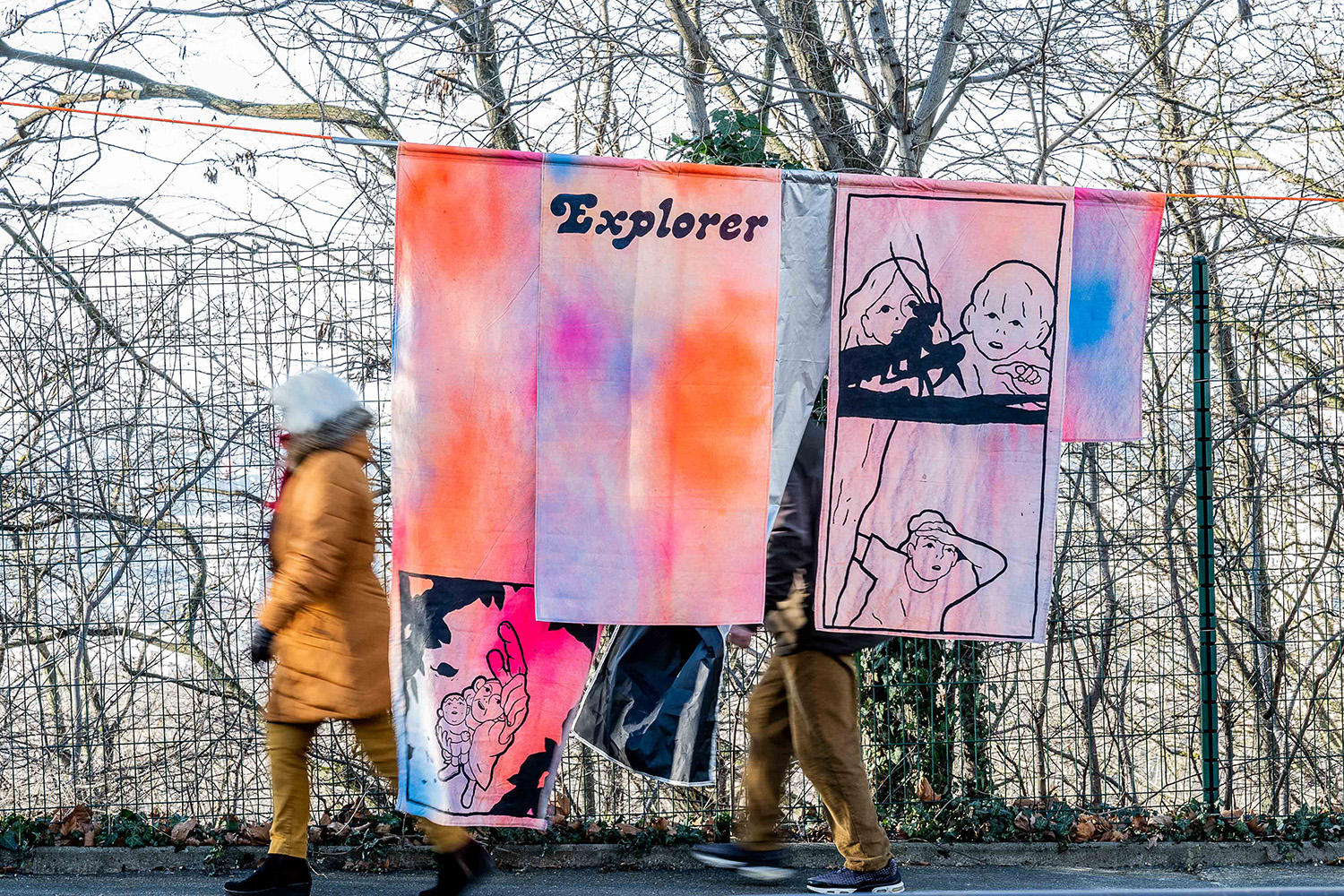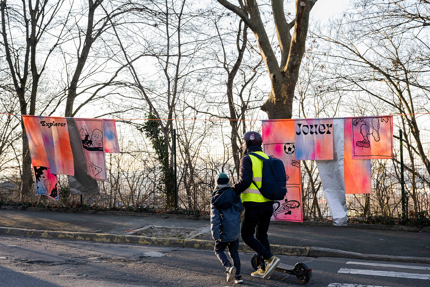 Comment projeter la transformation d’un espace public à partir de l’existant ? L’avenue Schuman aux Lilas sera le premier tronçon aménagé dans le cadre du Grand Chemin, la boucle verte de l’Est Parisien, fin 2024. Afin d’imaginer la transformation de cette rue, discuter avec les habitants et tester de nouveaux usages, nous avons organisé avec l’agence Ter et le Collectif ETC un « Rendez-vous des hauteurs », un format d’activation éphémère réplicable dans différentes villes. Un kit festif conçu par le collectif ETC scénographie les espaces du futur projet d’aménagement, des points informations se déploient à partir des « bolides de la concertation », des activités sont proposées par les acteurs locaux.